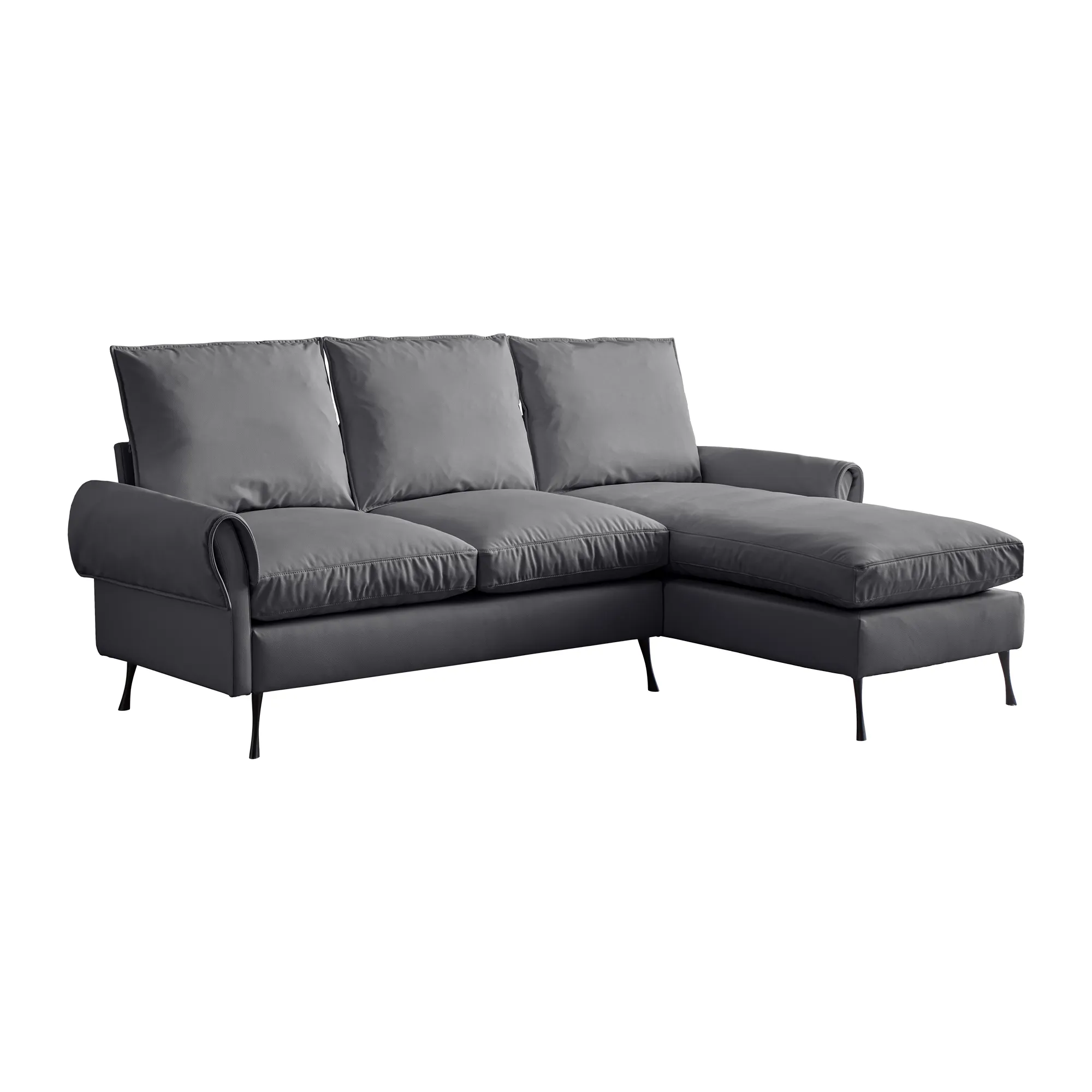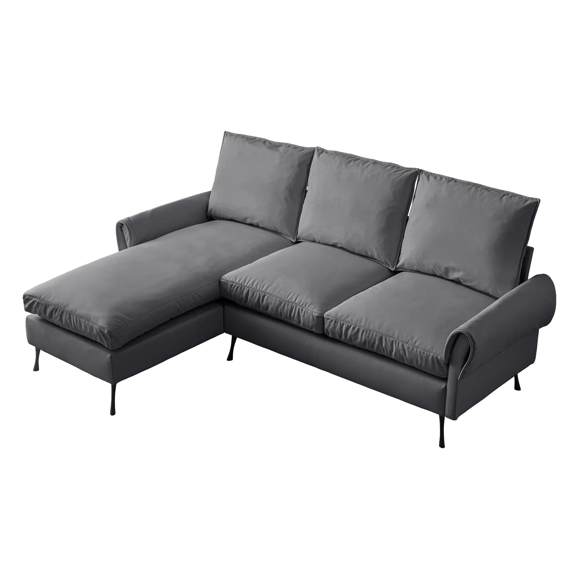 Modern Sectional Technical Leather L-Shaped Sofa Couch With Reversible Chaise Lounge - Dark Gray