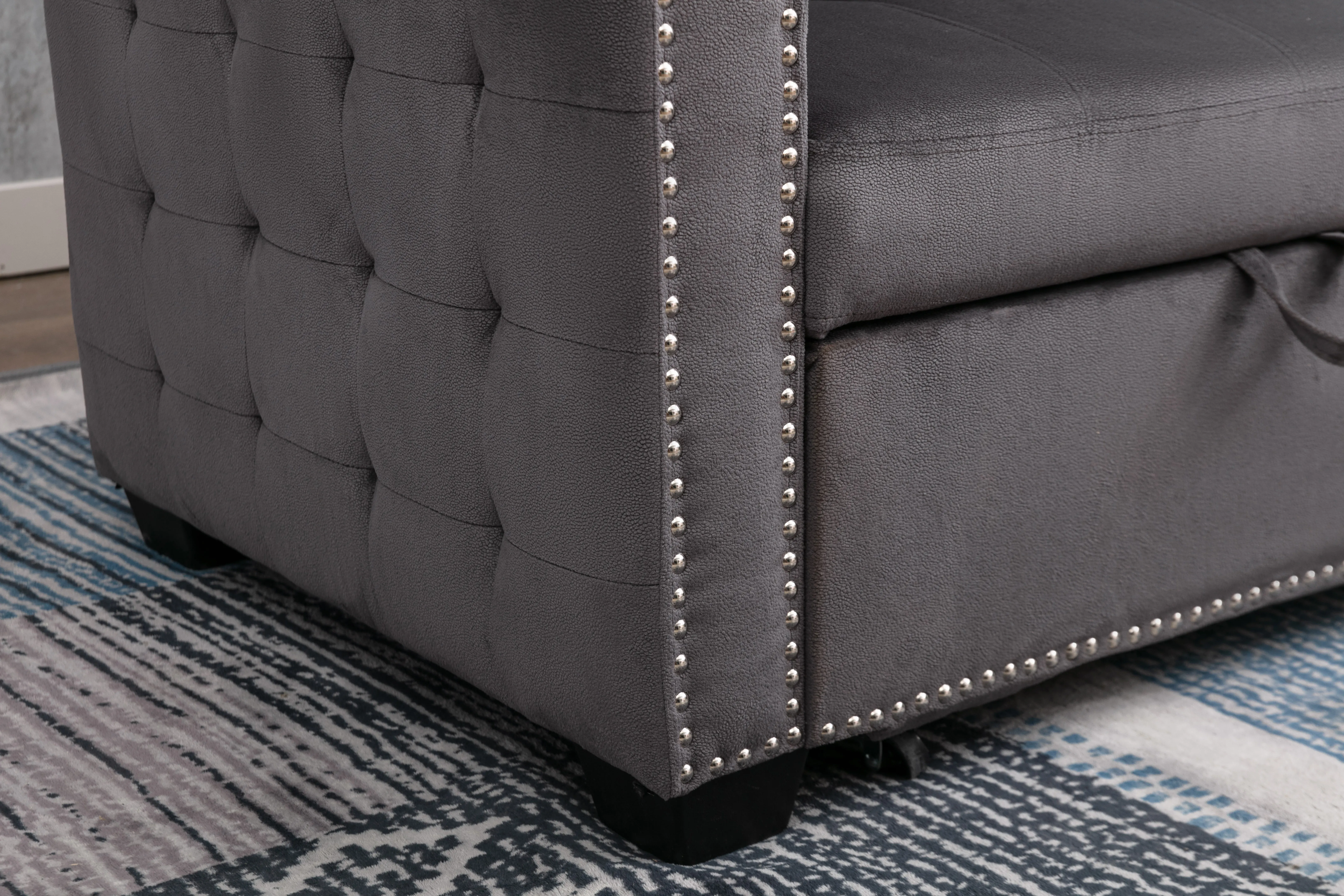 Reversible Sectional Storage Sleeper Sofa Bed, L-Shape 2 Seat Sectional Chaise With Storage, Skin-Feeling Velvet Fabric - Dark Gray