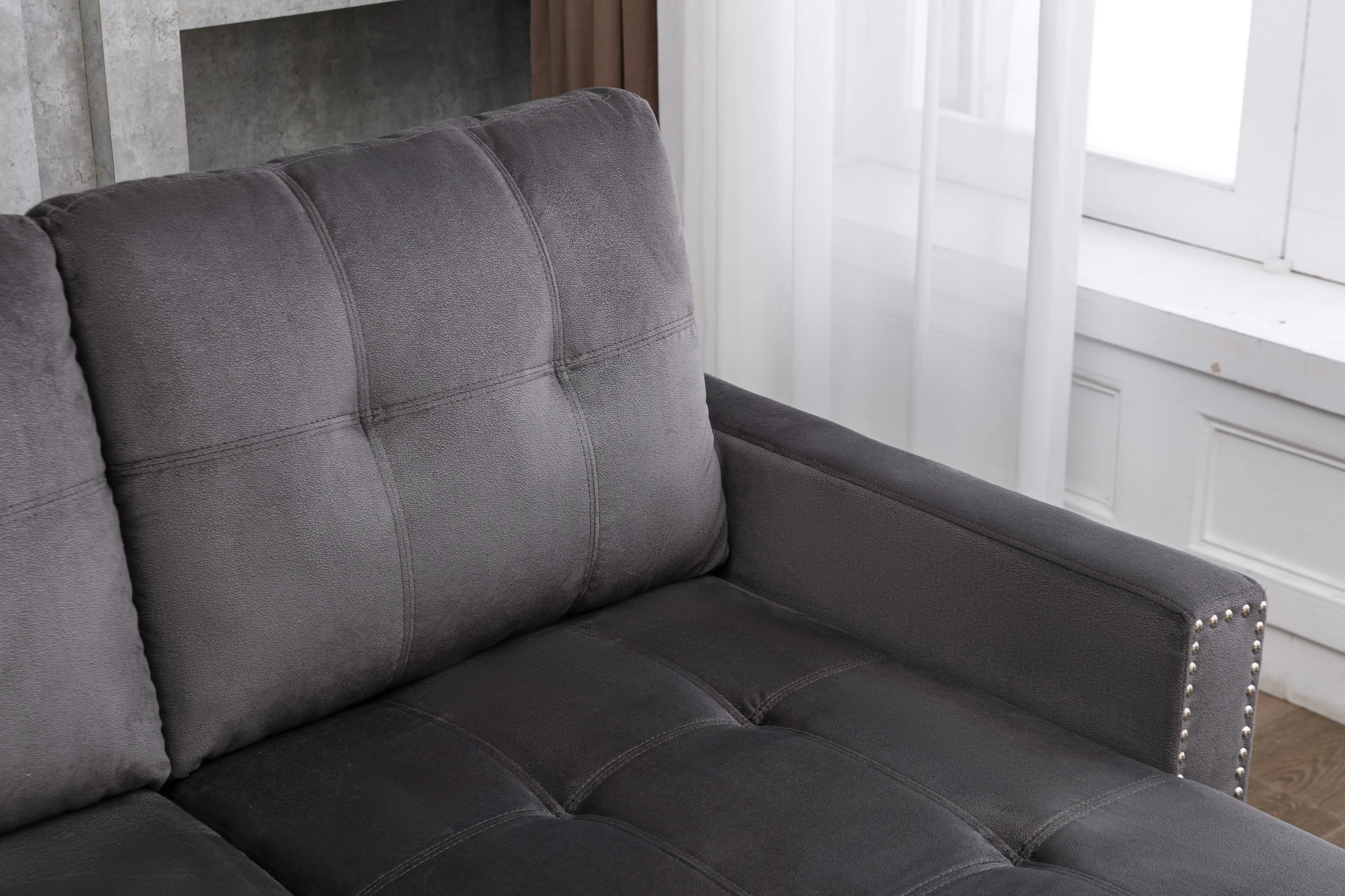 Multi-functional Design: Features a pull-out sleeper, storage chaise, and removable cushions for added convenience. Reversible Sleeper Bed: Offers versatility with a reversible storage sleeper bed and beautiful arm design for a stylish touch. Skin-Feeling Velvet Fabric: Crafted with skin-feeling velvet fabric for a luxurious look and comfortable feel. Easy Assembly and Maintenance: Simple to assemble in 10 minutes or less, easy to clean with a damp cloth, and should be protected from prolonged direct sunlight.