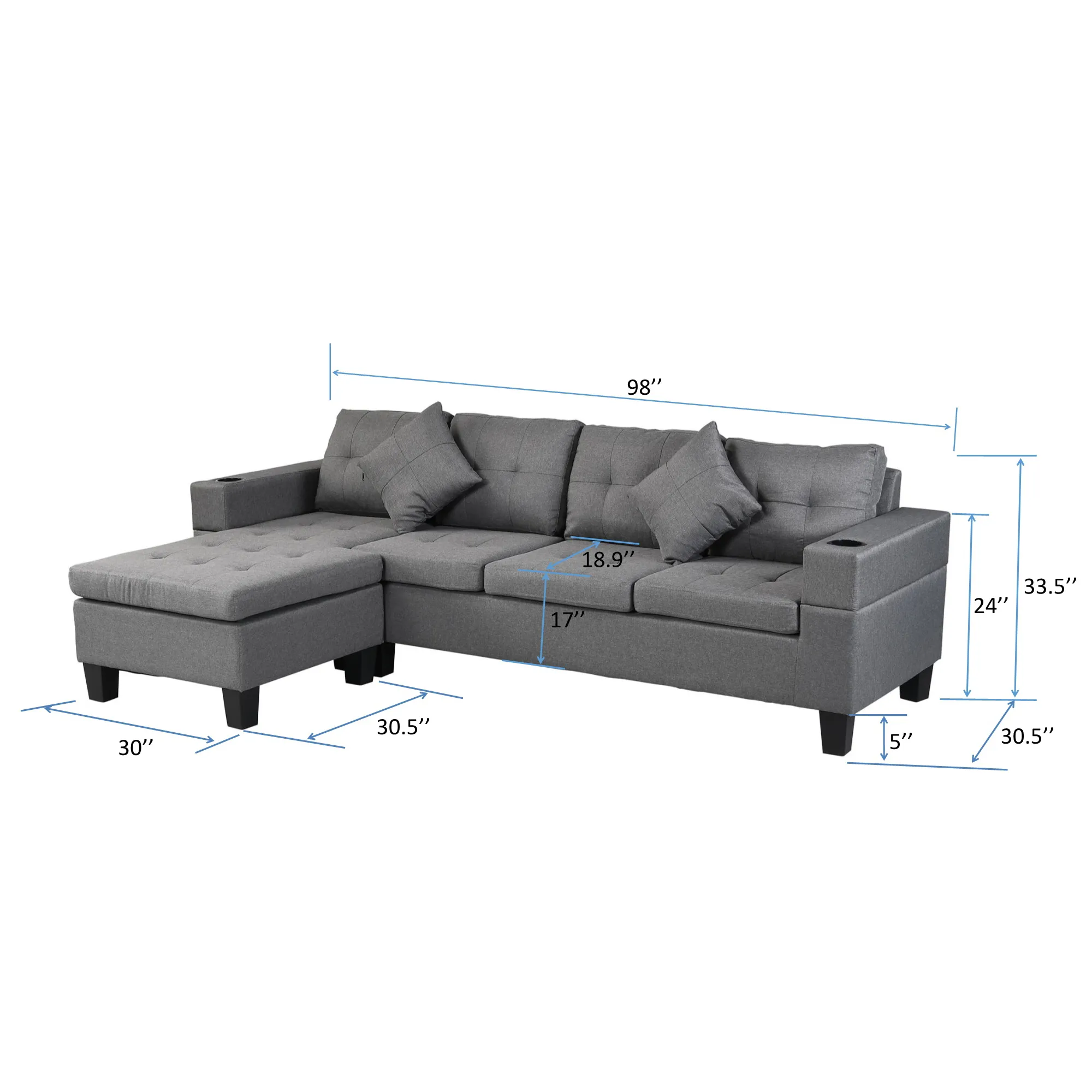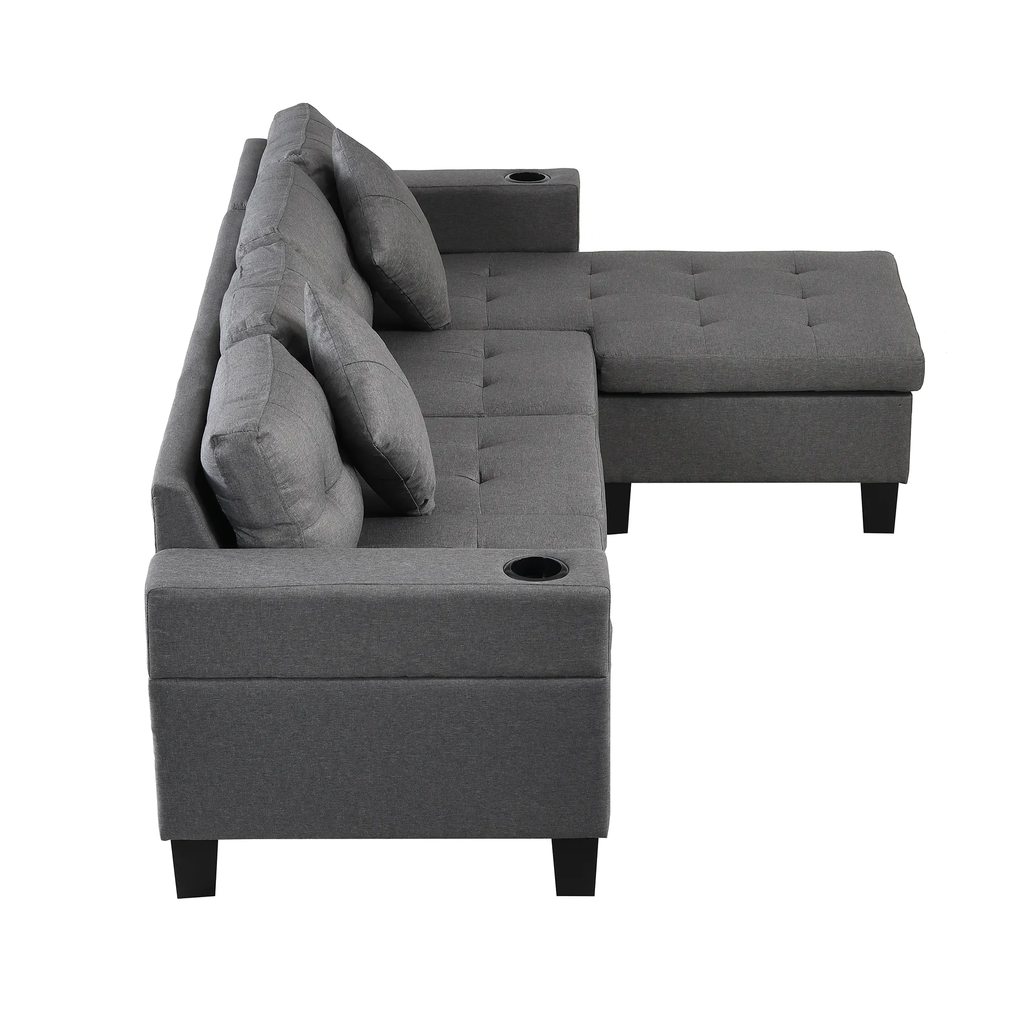 Sectional Sofa Set For Living Room With L Shape Chaise Lounge, Cup Holder And Left Or Right Hand Chaise Modern 4 Seat - Gray