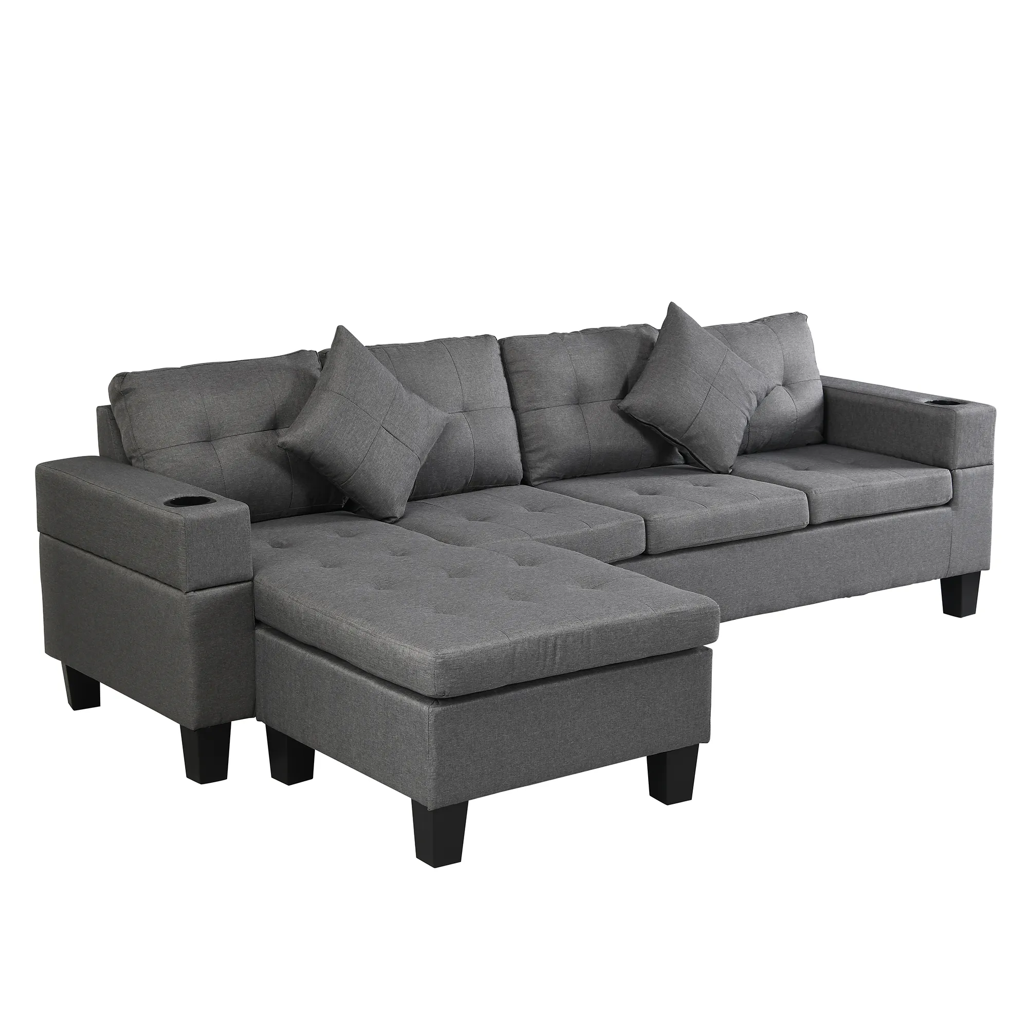 Sectional Sofa Set for Living Room with L Shape Chaise Lounge, cup holder and Left or Right Hand Chaise Modern 4 Seat