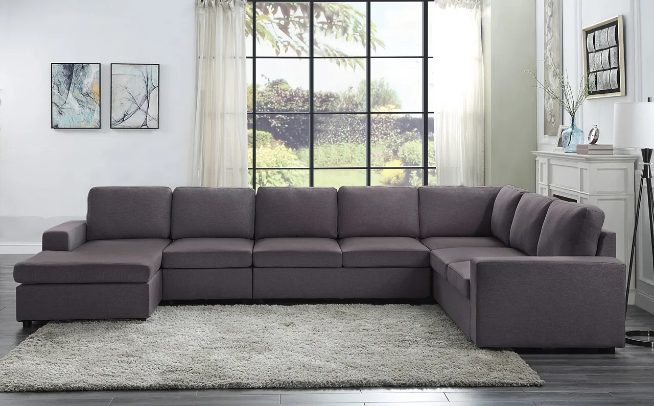 Unwind in the comfort of our modular sectional sofa with reversible chaise! Expertly crafted from solid wood and fine fabrics, this sofa offers a stylish and comfortable experience for you and your guests. Its European-inspired design exudes timeless elegance and sets the tone for contemporary furniture trends. The modular pieces provide flexibility, allowing you to arrange the armless chairs and reversible chaise on either side to suit your preferences. Featuring foam-filled seats supported by pocket coil springs, it offers both relaxation and support for extended lounging sessions.