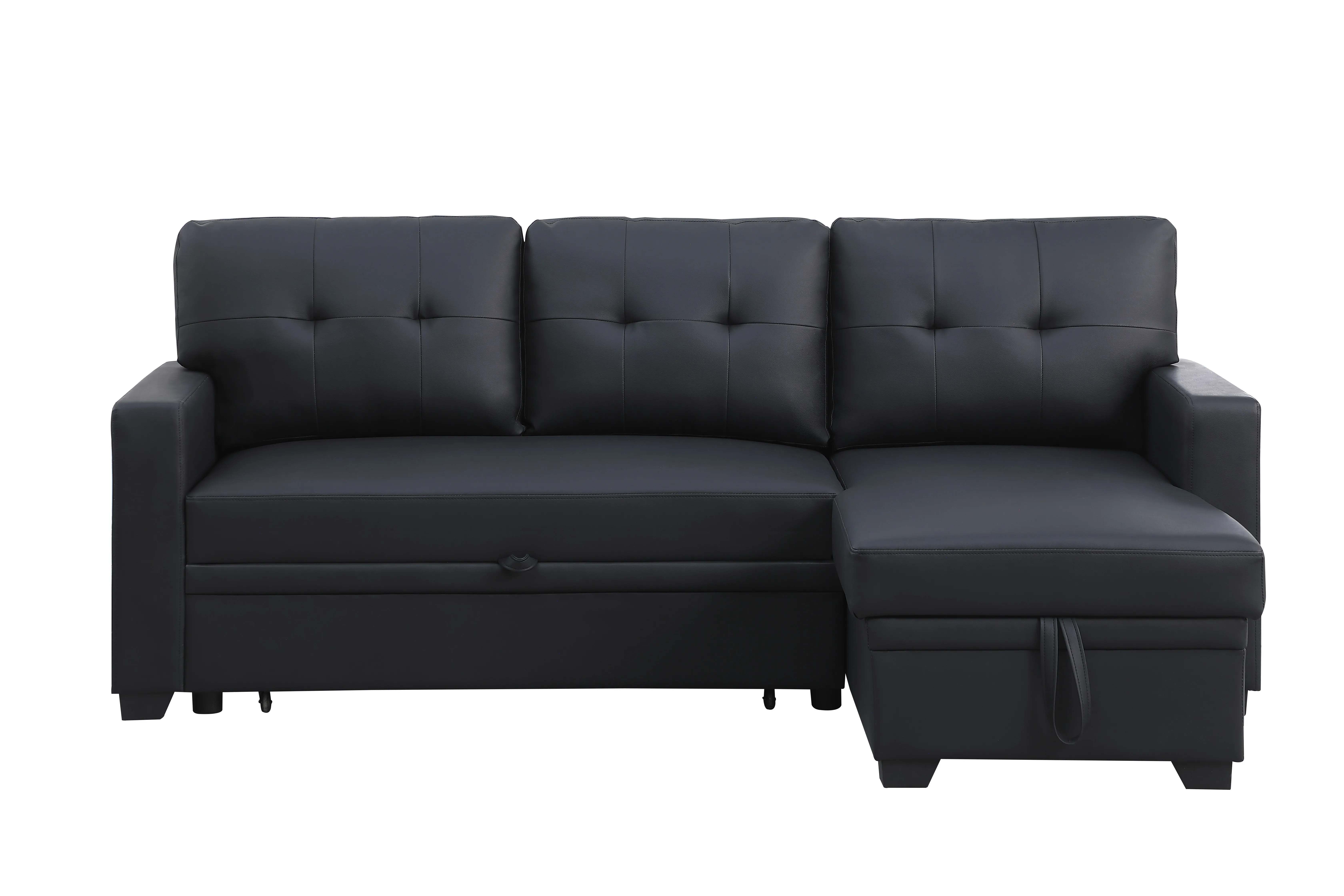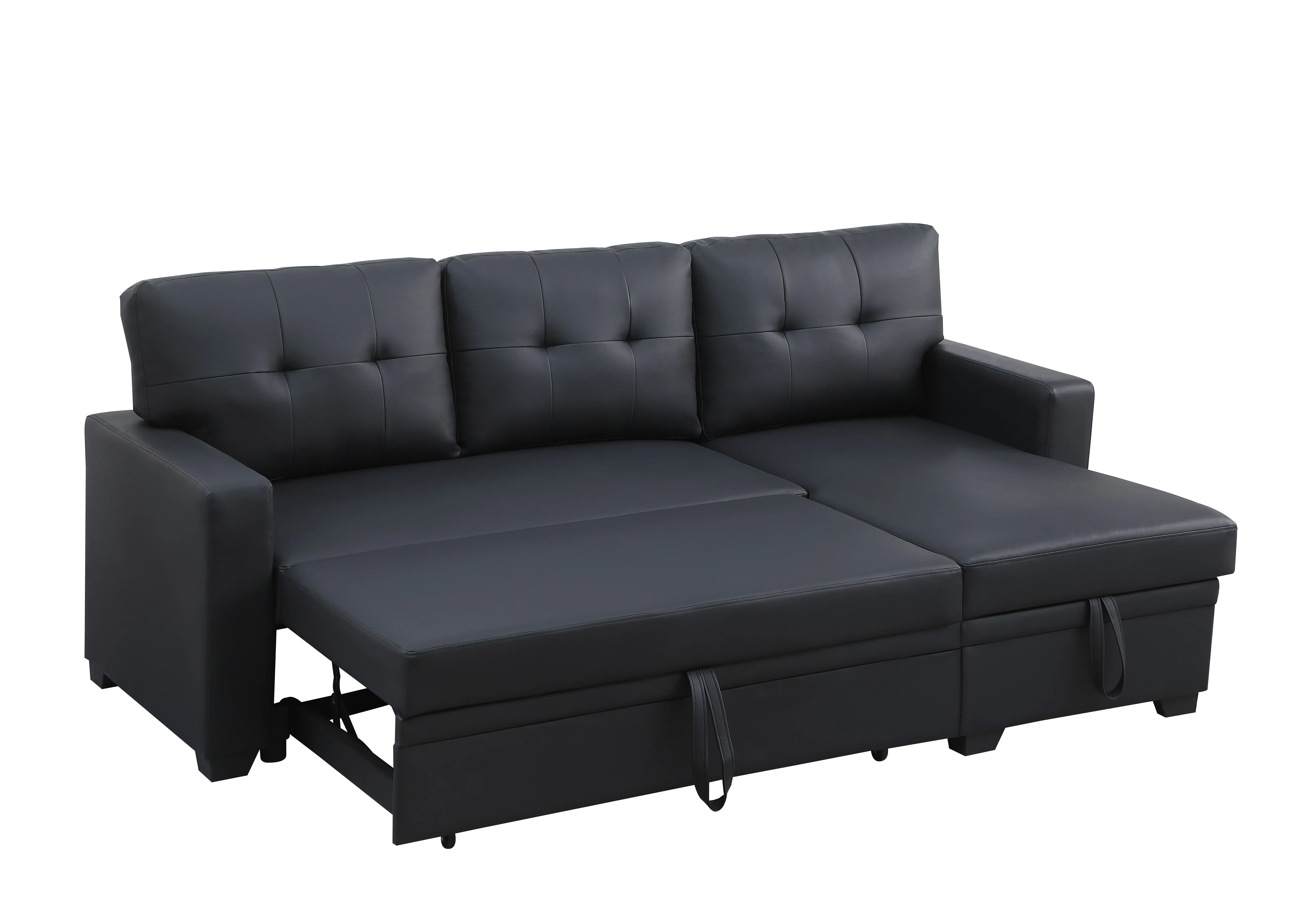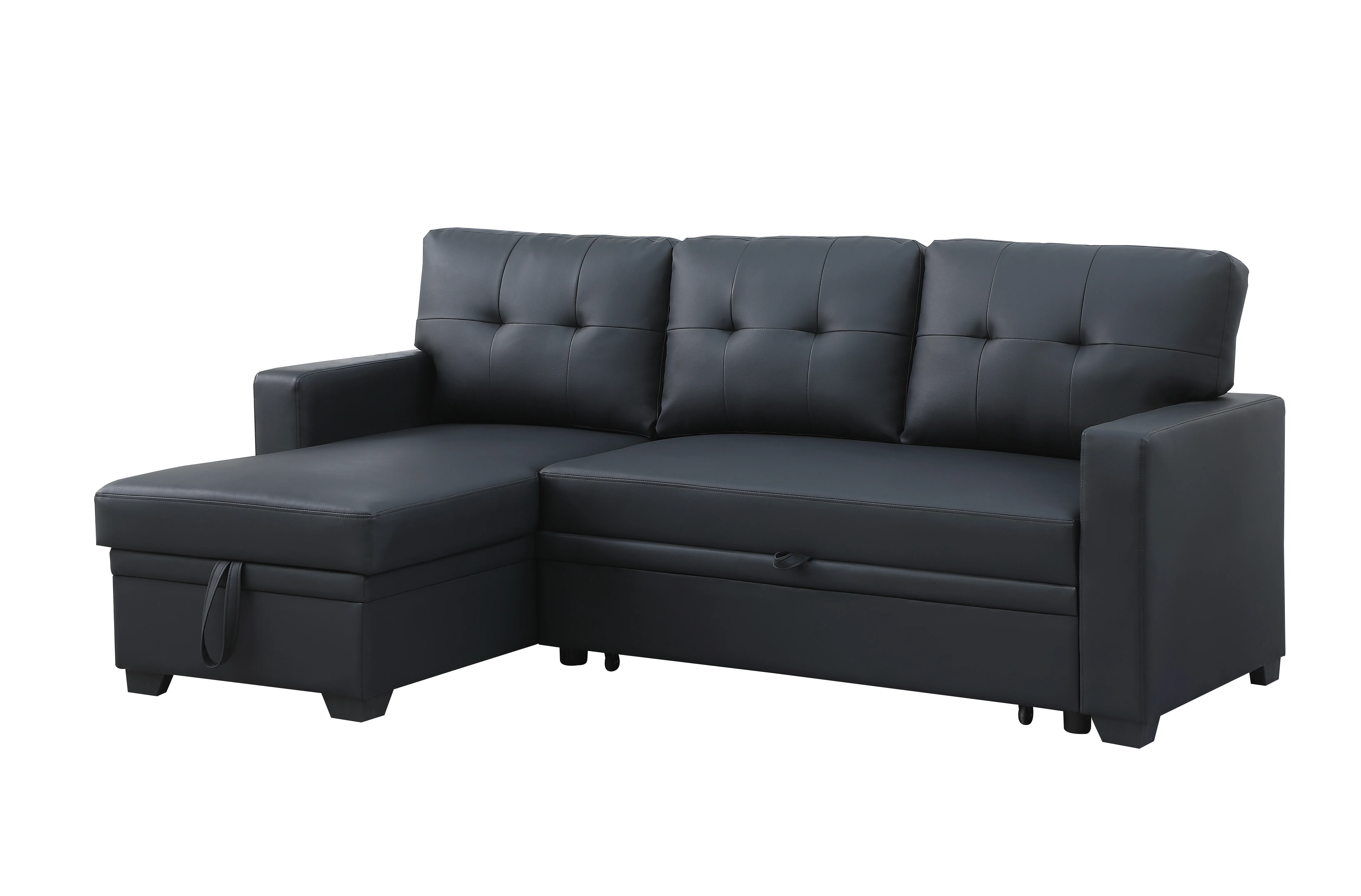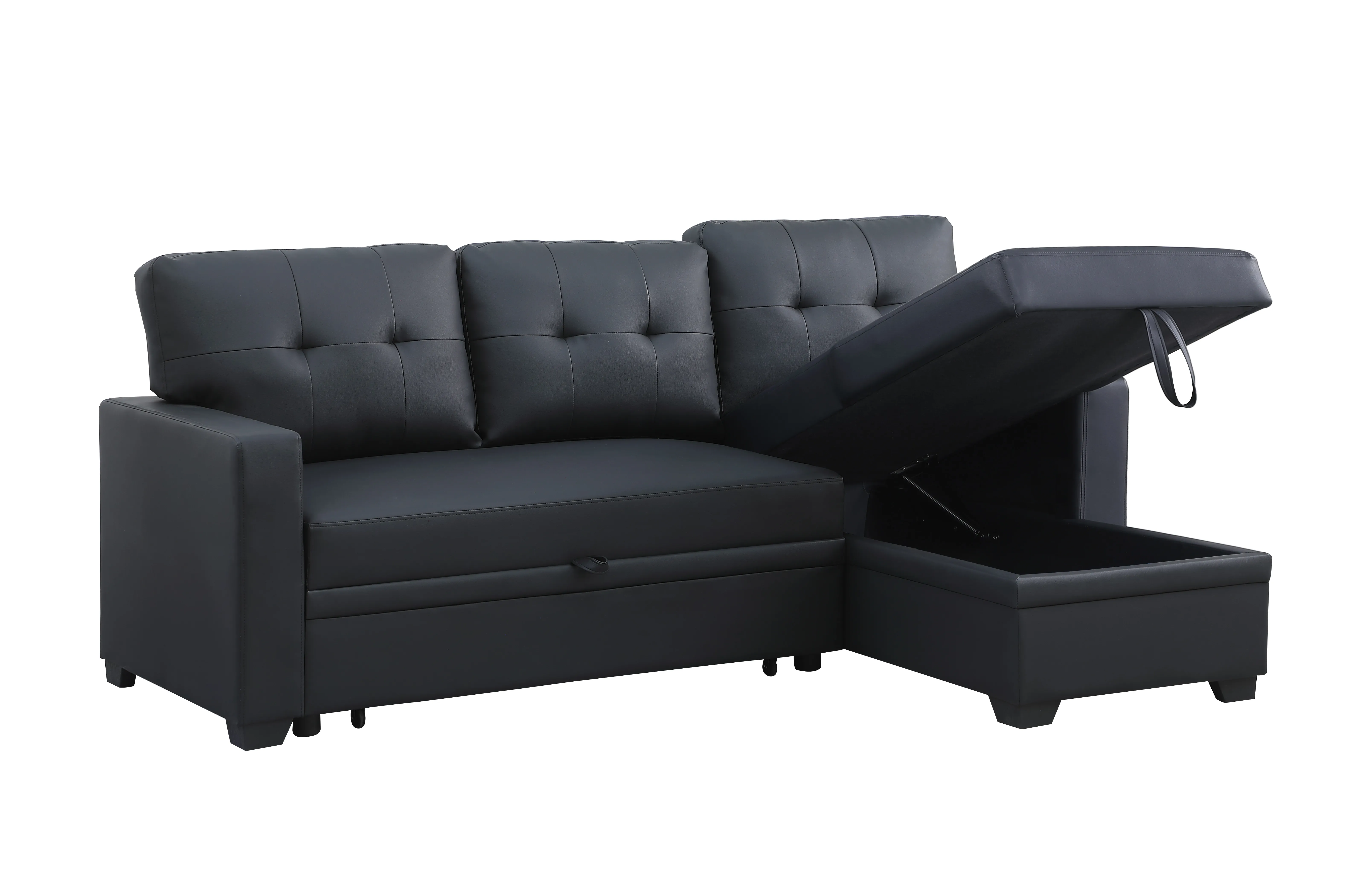 Upholstered Pull Out Sectional Sofa With Chaise - Black