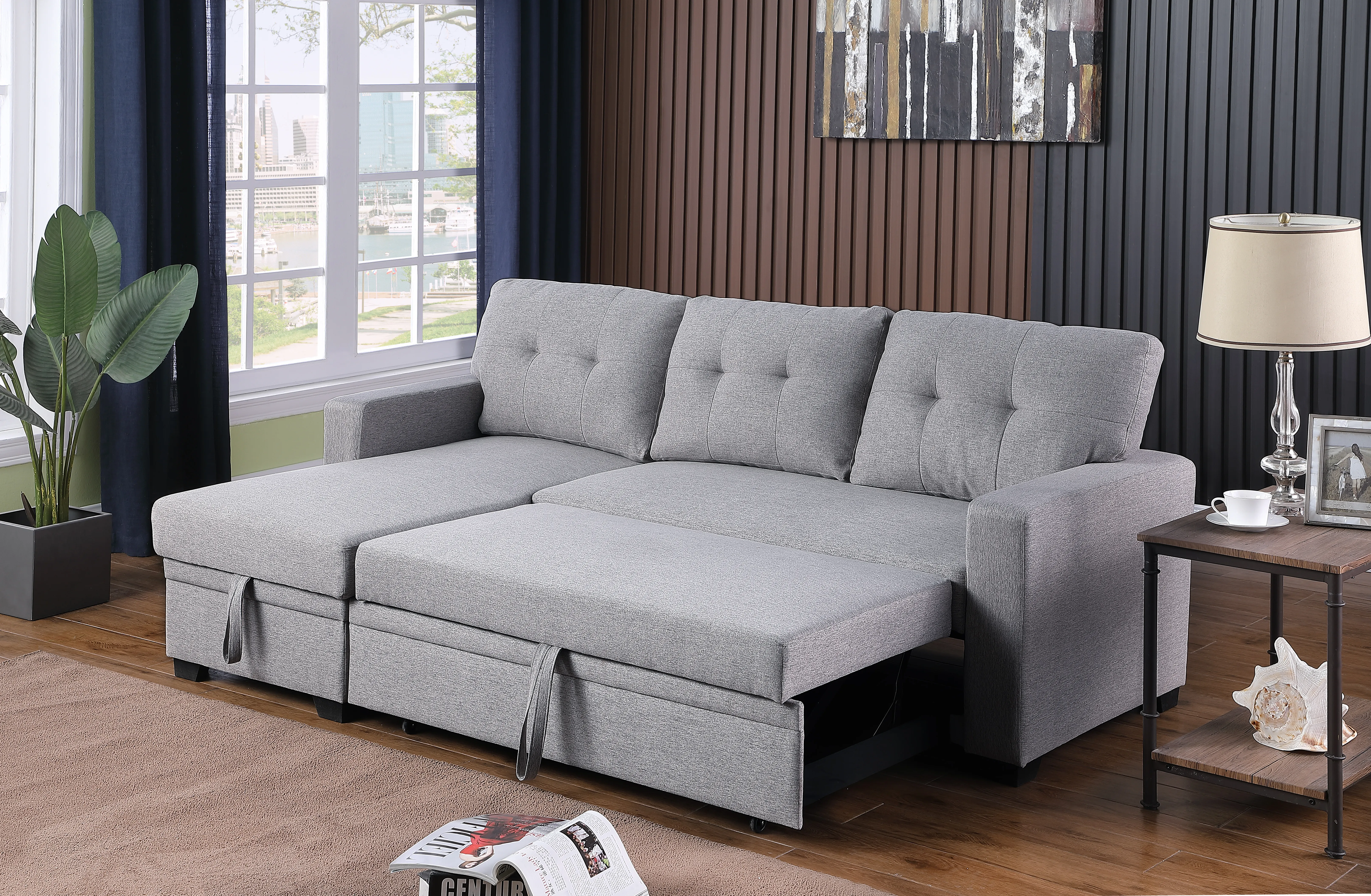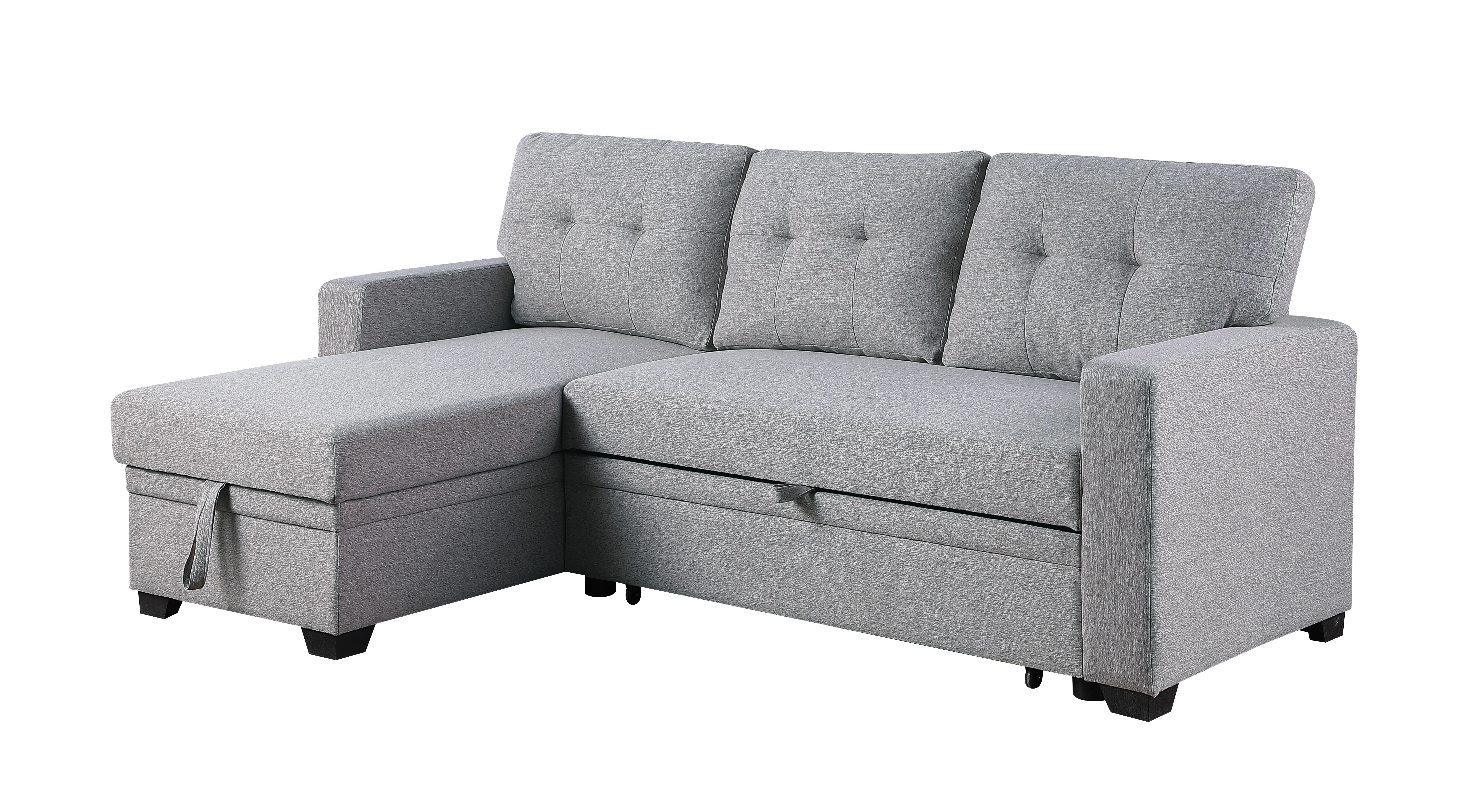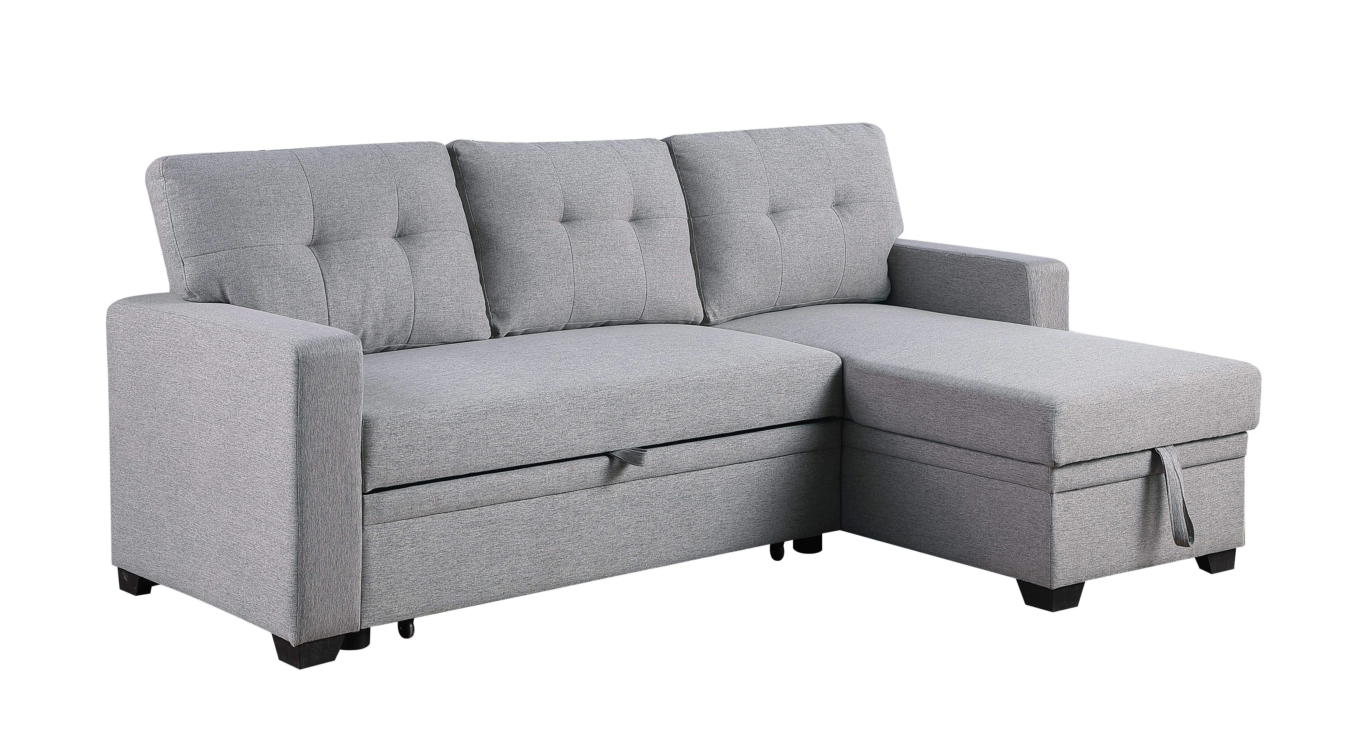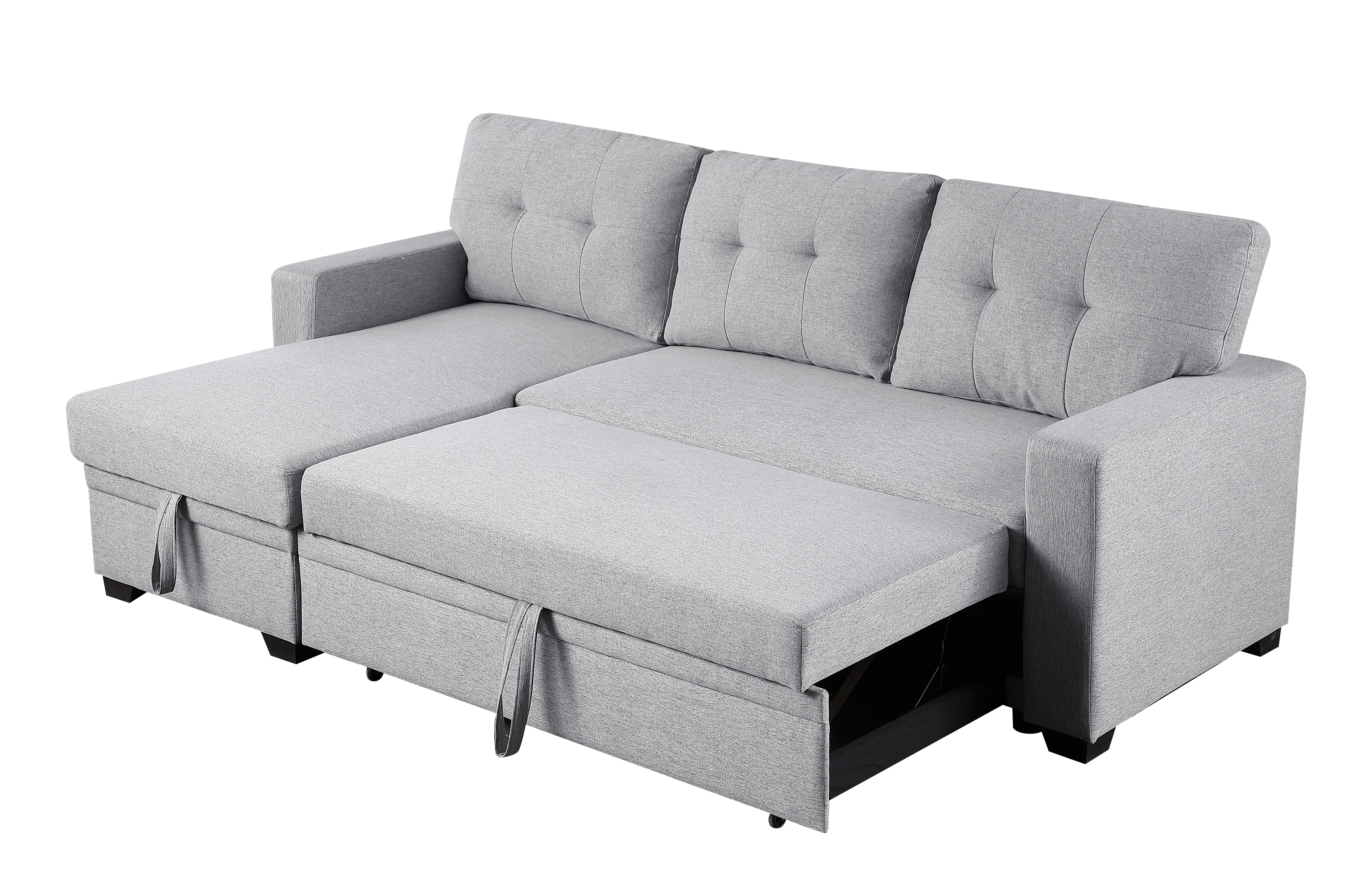 Upholstered Pull Out Sectional Sofa With Chaise - Light Gray