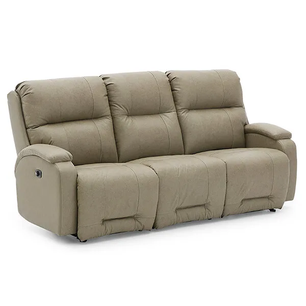 The clean lines, aesthetic details and diverse fabric offering allow this reclining sofa to seamlessly slip into any home’s décor. While the back features immense amounts of pillow fibers, the slim padded arms offer the perfect amount of support and rest.