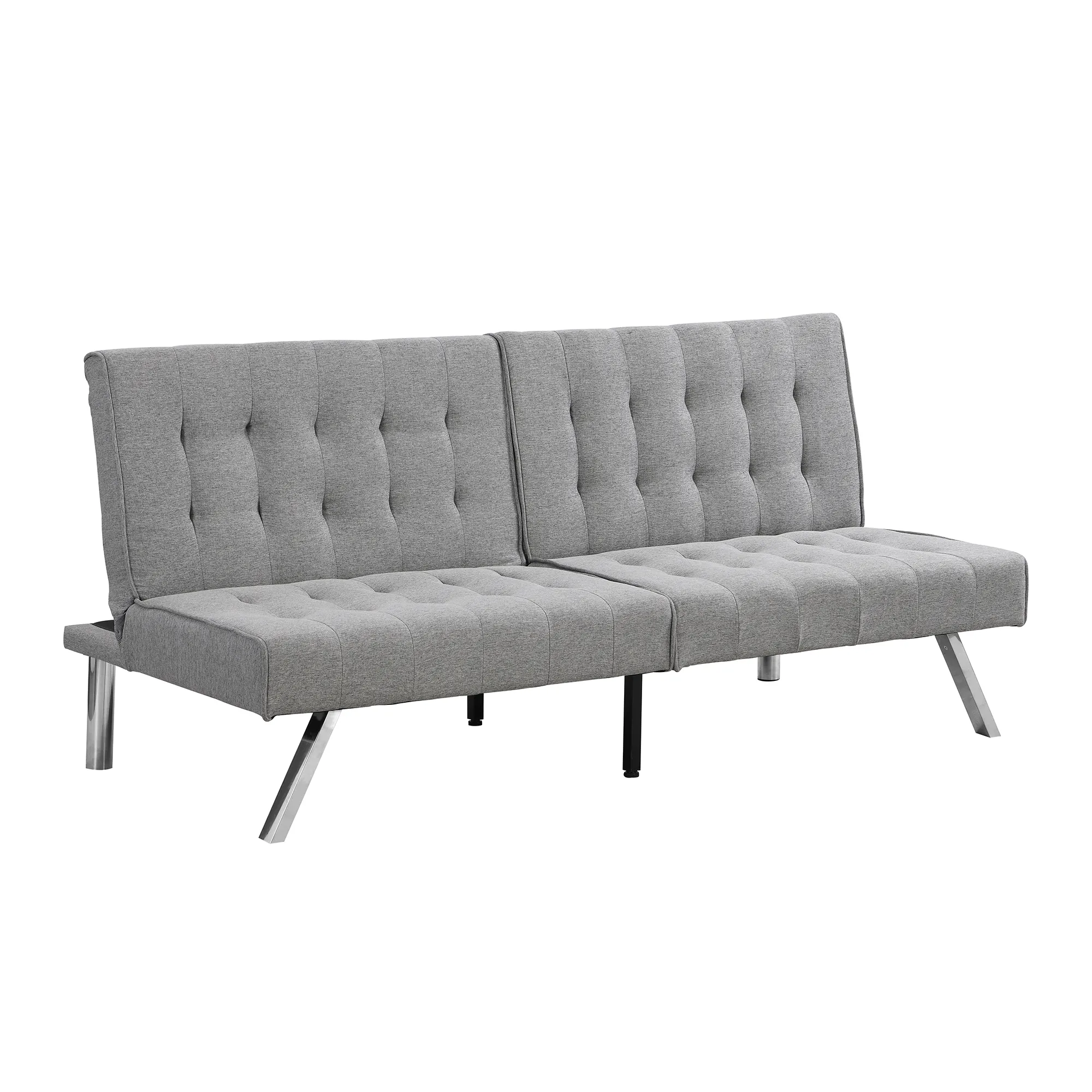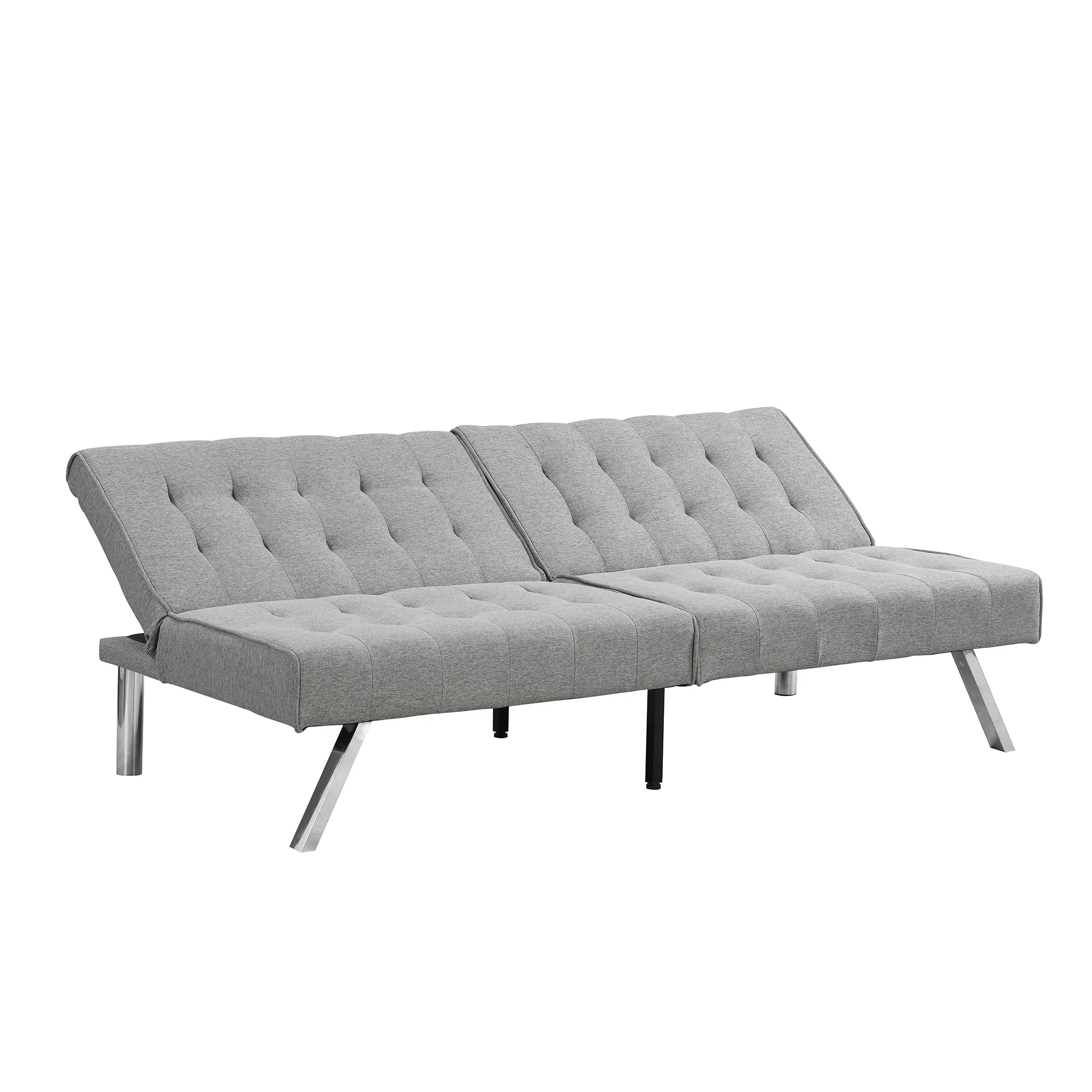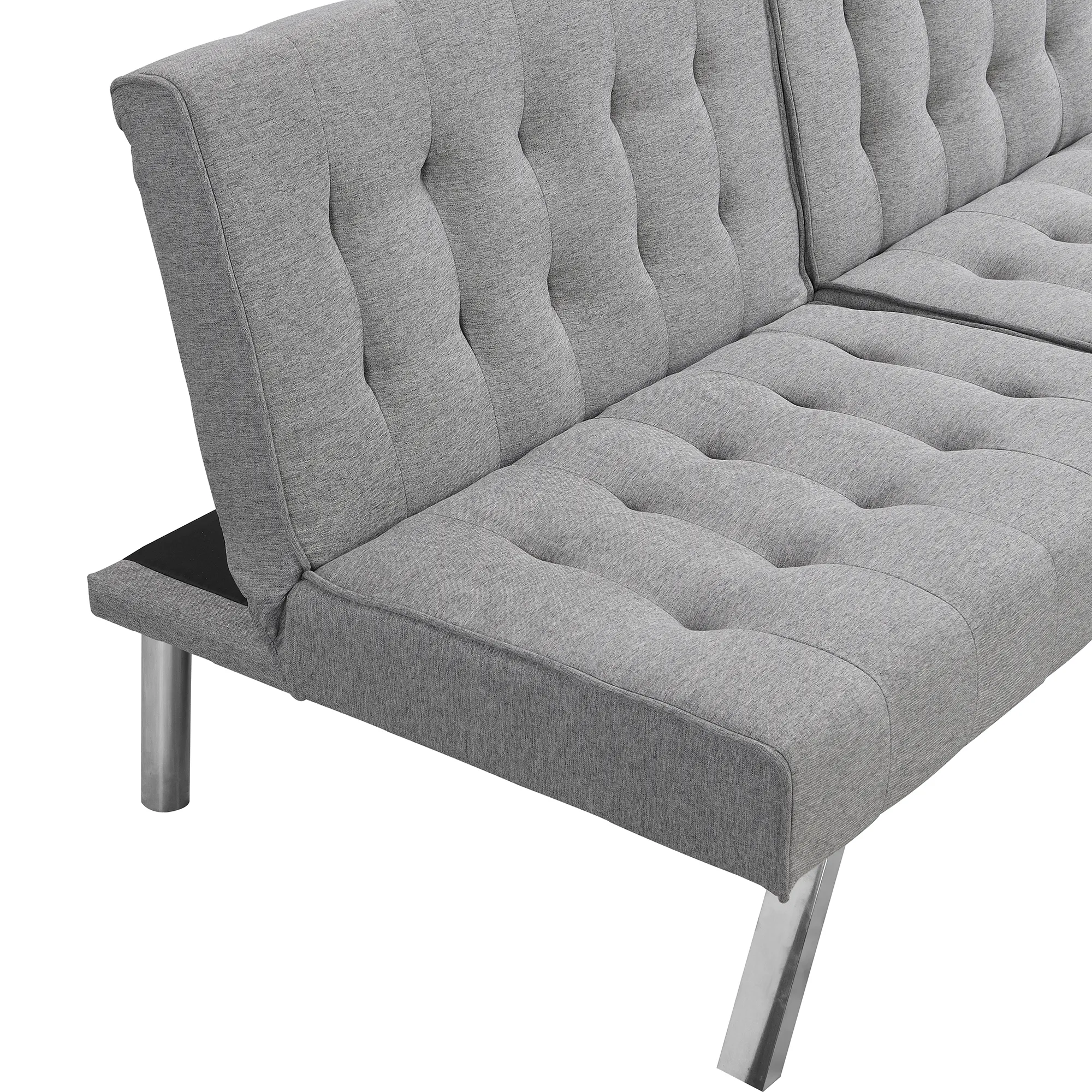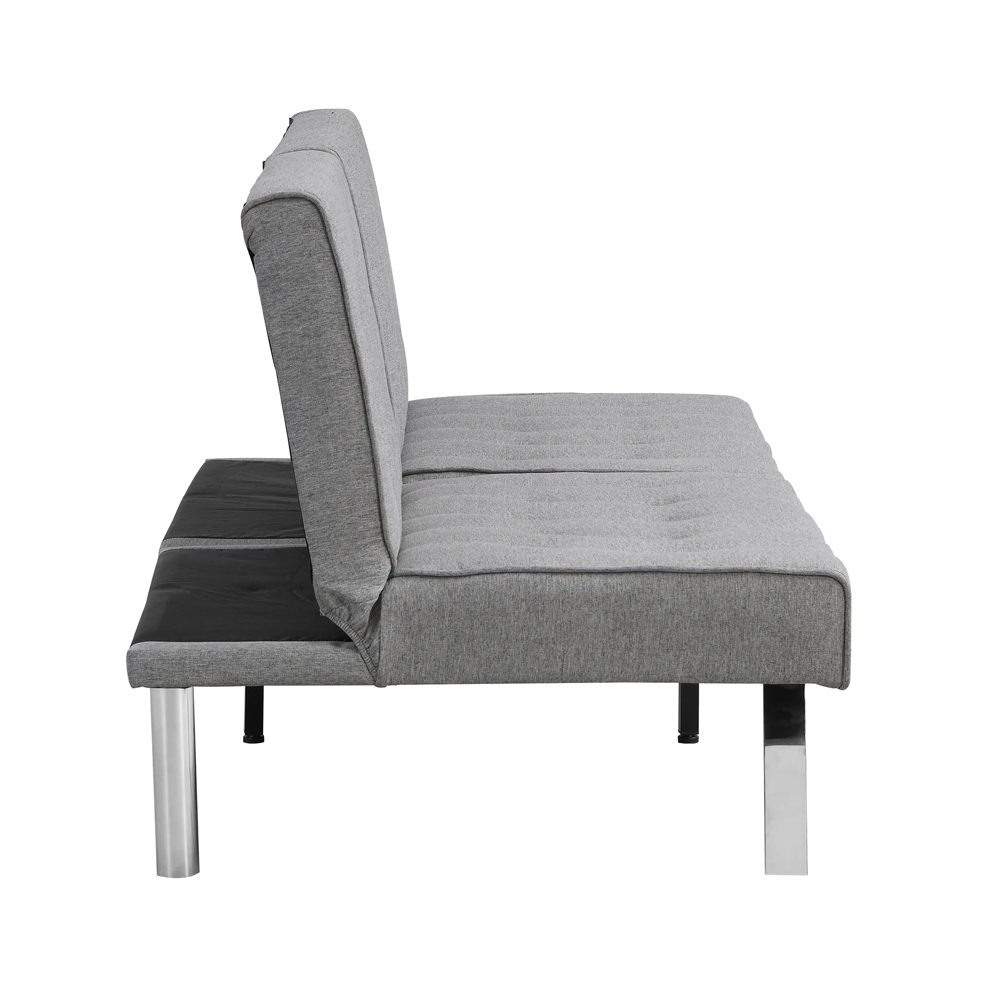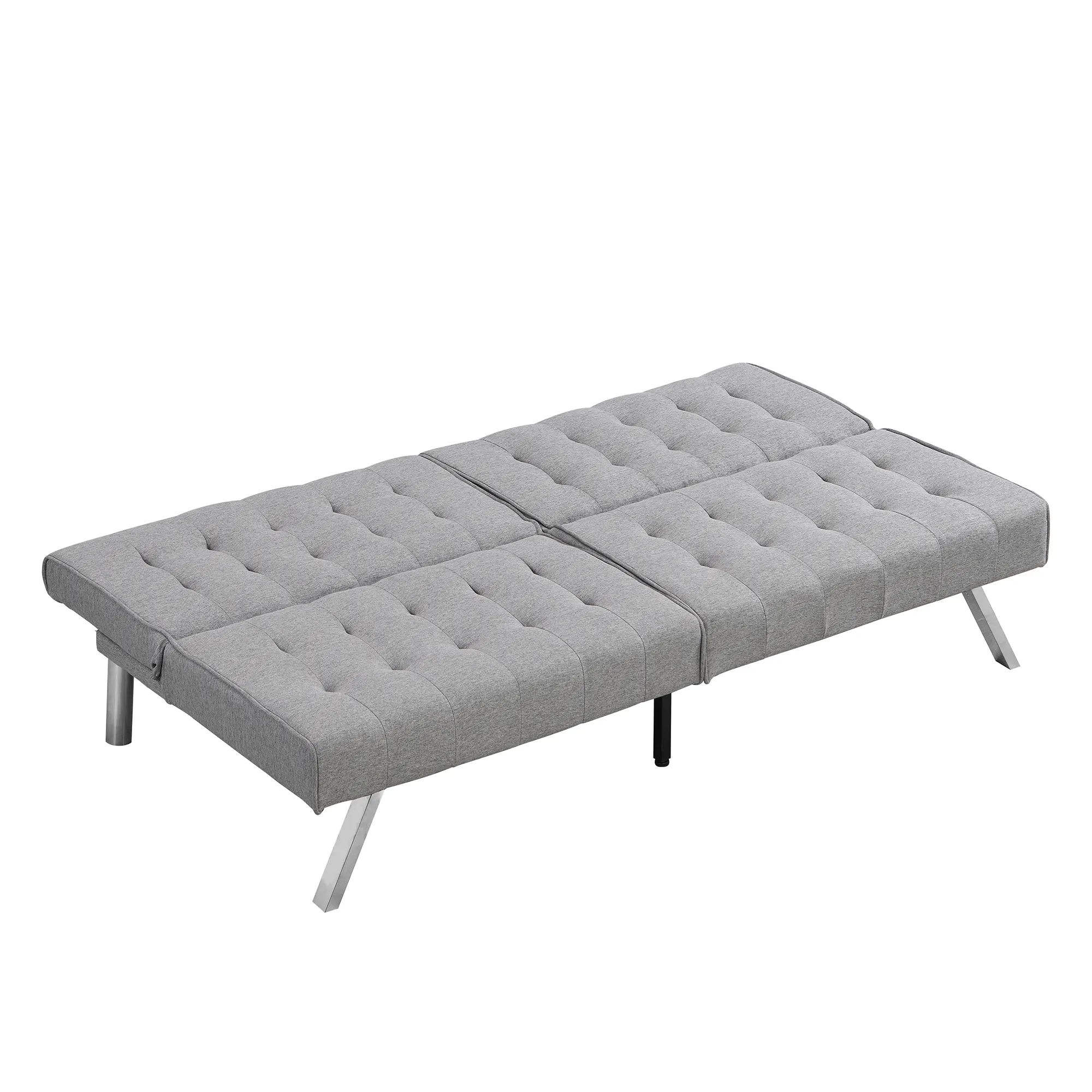 WOOD FRAME, STAINLESS LEG, FUTON, SOFA BED BLACK Features: - Multifunctional sofa bedSuitable for Any SceneNo Longer Worry about Unexpected Guests- User-friendly Design: easy to store the chair and save space for unused time. -Many scenes usagecan be used as sofa, lounge chair or single bed, very useful and practical. Simple design decor fits living room, bedroom, dorm, or office. -Easy assembly: Assembly is simple and quick -ERGONOMIC DESIGN: STABLE RELIABLE, High-Quality Material for Best User Experience- Its design allows the backrest to recline back, which is great for lounging and sleeping. *Specifications: - Colour: Black Faux Linen- Weight Limit: 650LBS- Overall Dimension: Dimenion1: Sofa: 68.1x 32.9x 32.3 Dimension2: Bed: 68.1x40.9x15.4-Gross Weight: 66 LBS. Package Includes: - Assembly Hardware - Assembly Tool - Assembly Manual