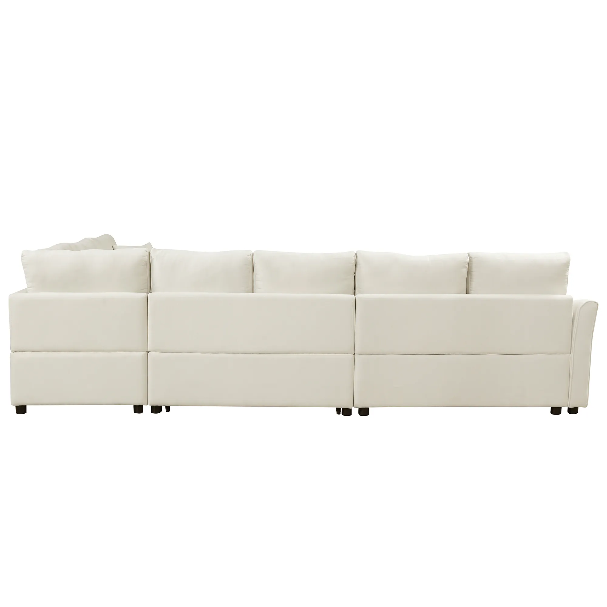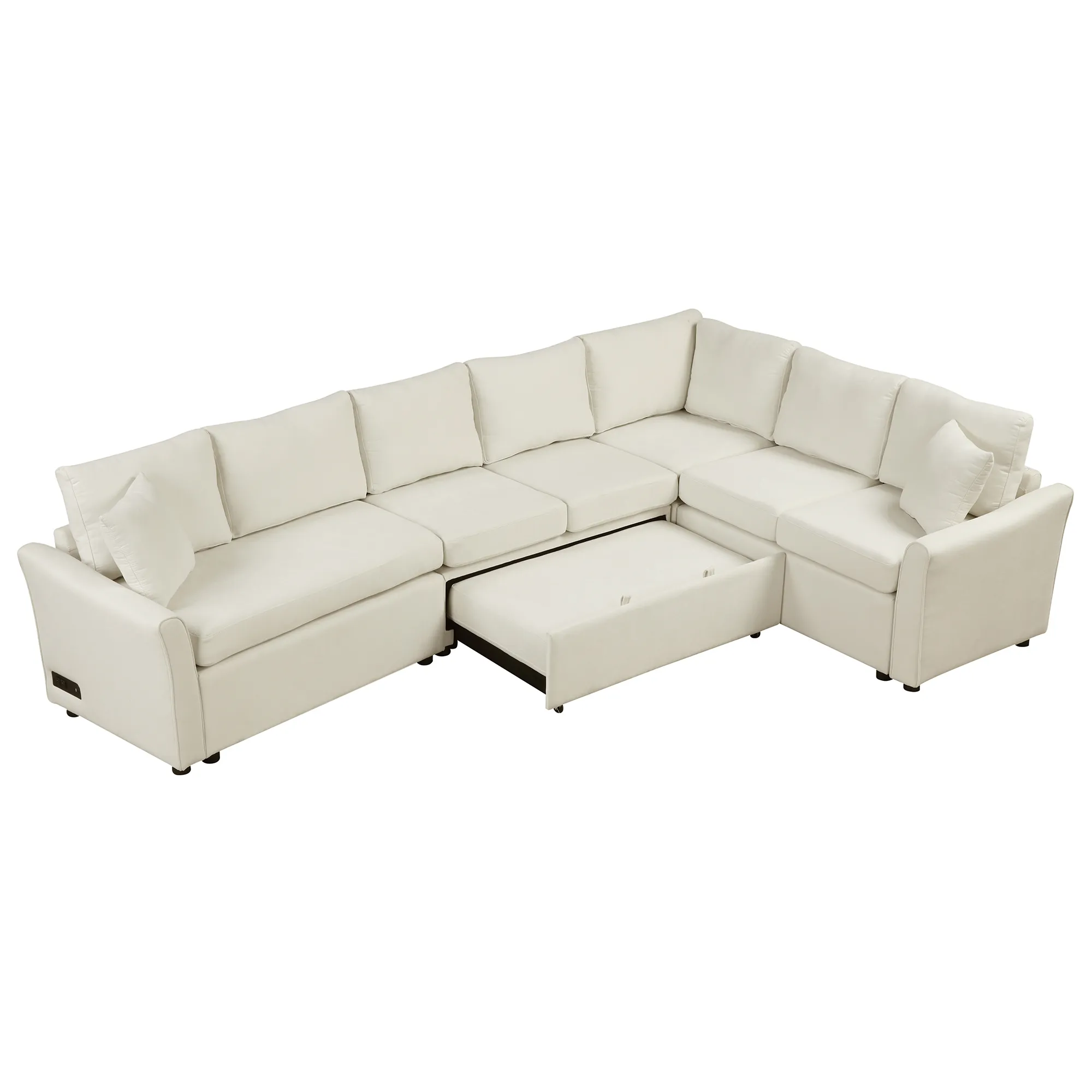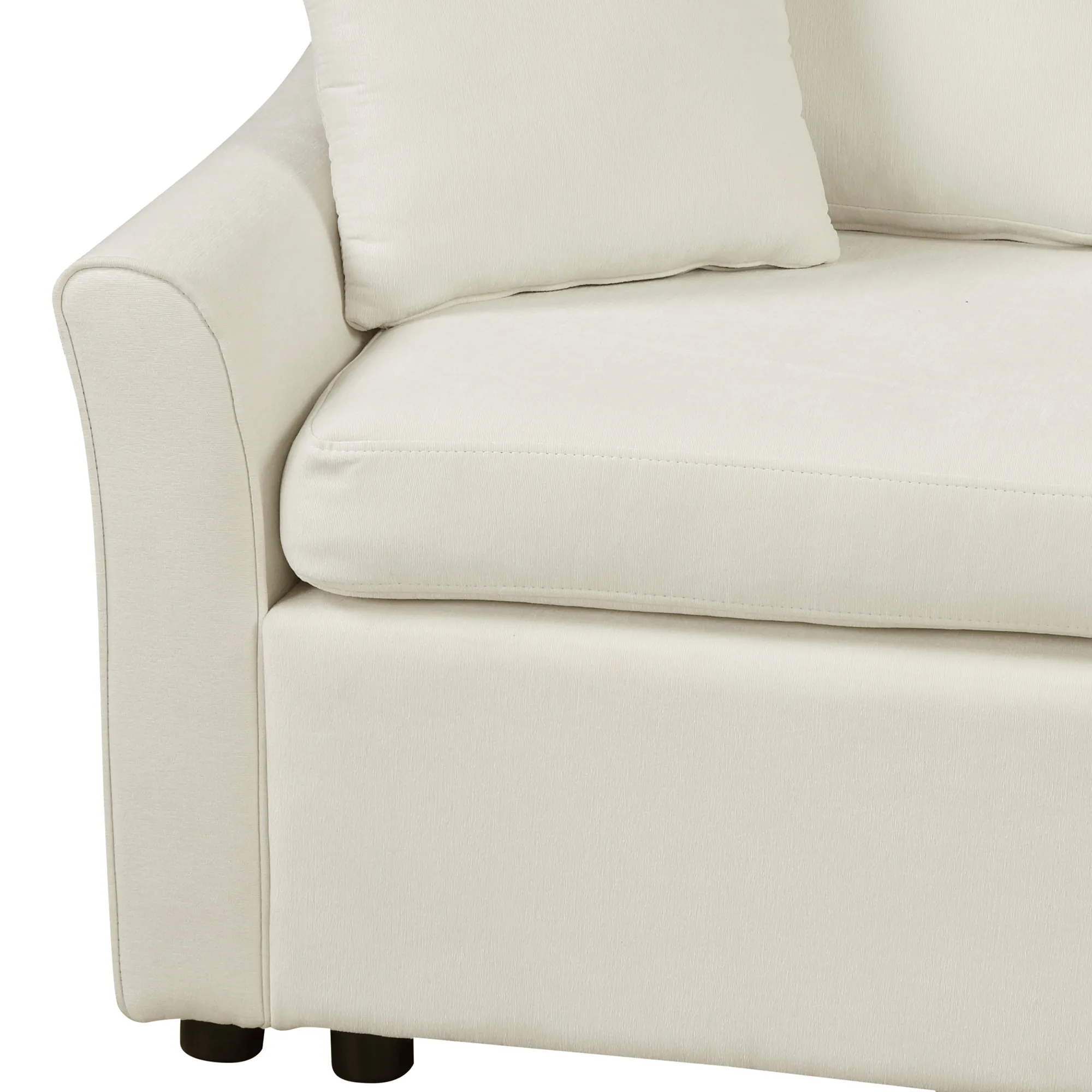 L-Shaped Sofa Convertible Sofa Bed Pull Out Sofa Sleeper With Two Back Pillows, Two USB Ports And Two Power Sockets For Living Room - Beige