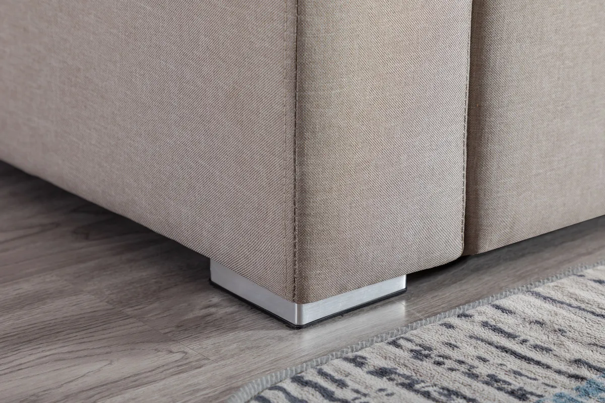 Unveiling a harmonious blend of comfort, style, and quality, this Sectional invites you to experience living room bliss. This chic Grey two-seater sectional sofa with a reversible chaise effortlessly complements any living room, leaving a lasting impression on your guests. The sectional comes with pre-installed short silver plastic legs but offers the option to switch to taller black plastic legs for a heightened seating experience. Adorned with a comfortable linen fabric and accompanied by two matching accent pillows, it adds a trendy touch to your living space.