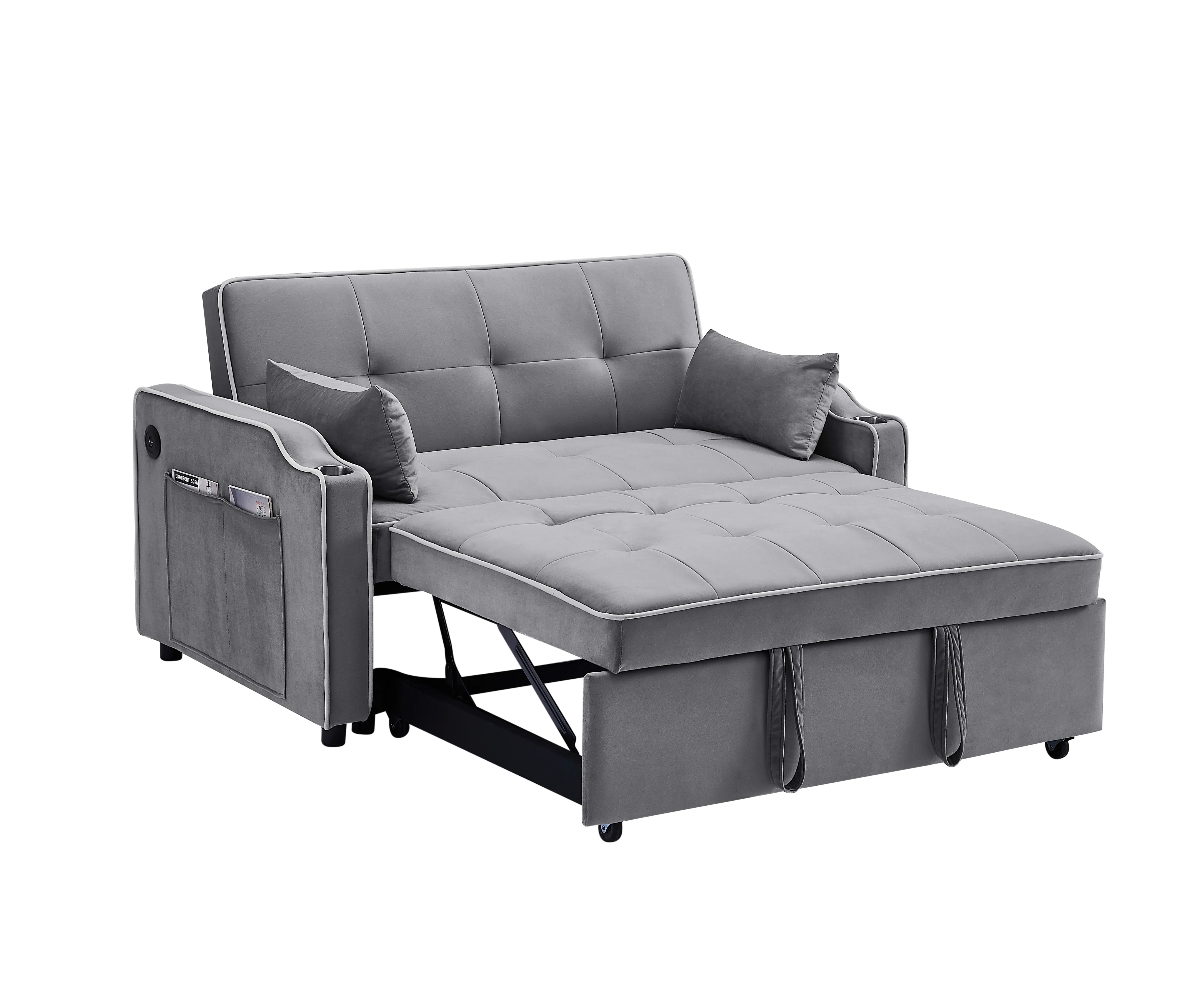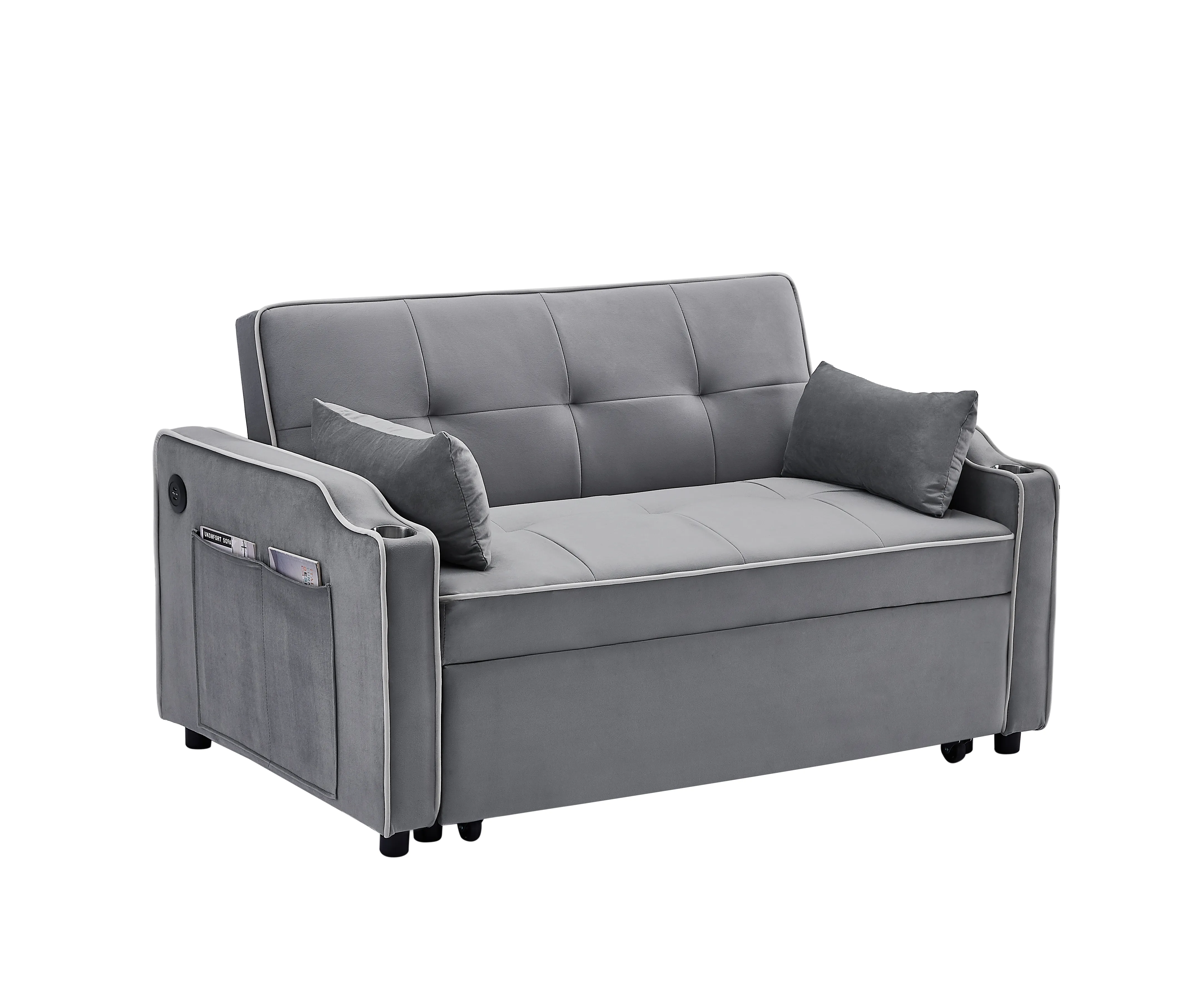 Durable High-Quality Velvet Fabric: Made of high-end velvet that is durable and skin-friendly, ensuring the sofa bed stays fresh for years without wrinkles or pilling.3-in-1 Convertible Design: This sofa bed can be easily converted into a chair bed, adjustable backrest chair, or chaise lounge, providing versatile seating options for different needs. Convenient Features: Equipped with USB ports, a cup holder, and a side pocket, adding convenience and functionality to the sofa bed for a more enjoyable experience.