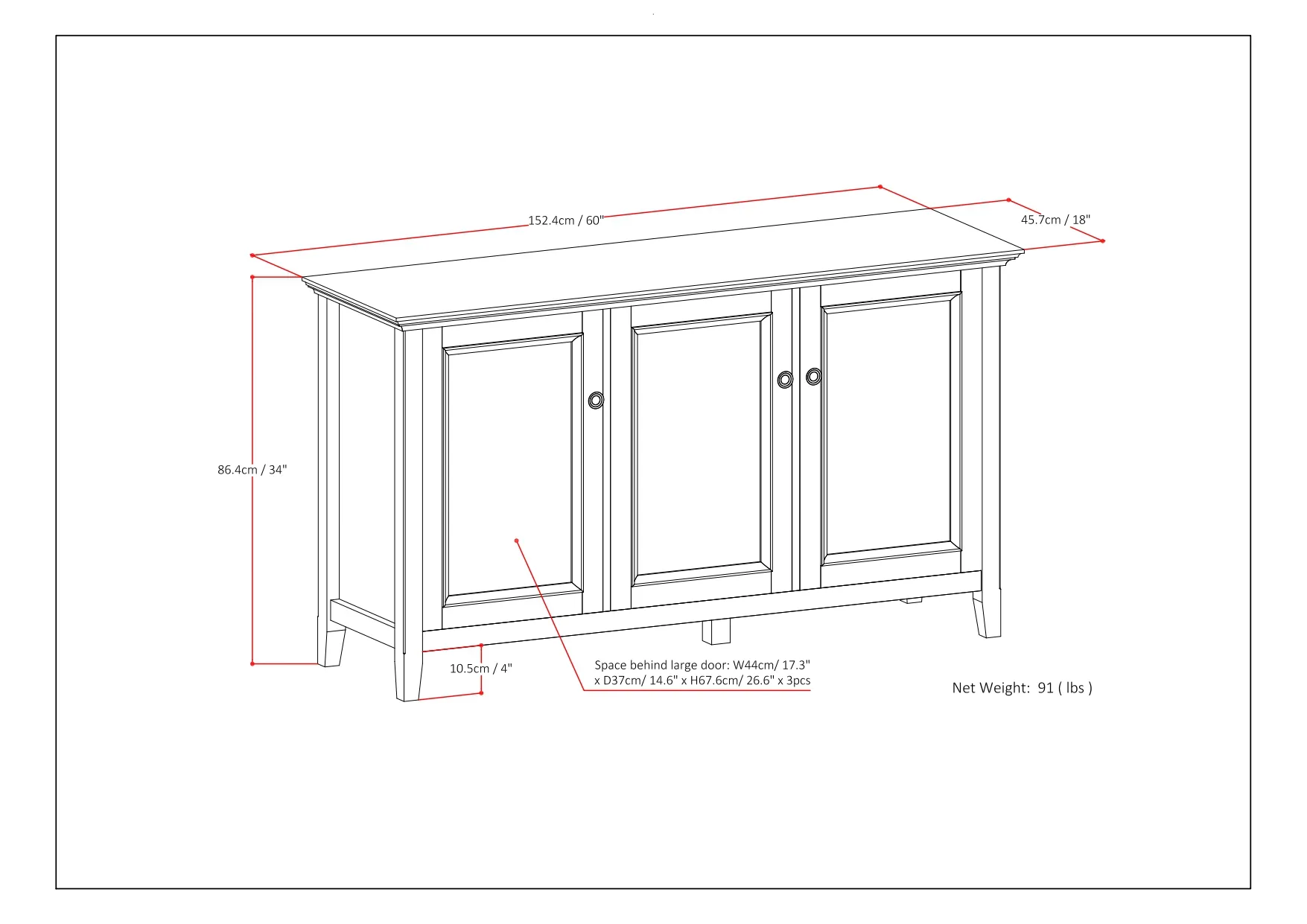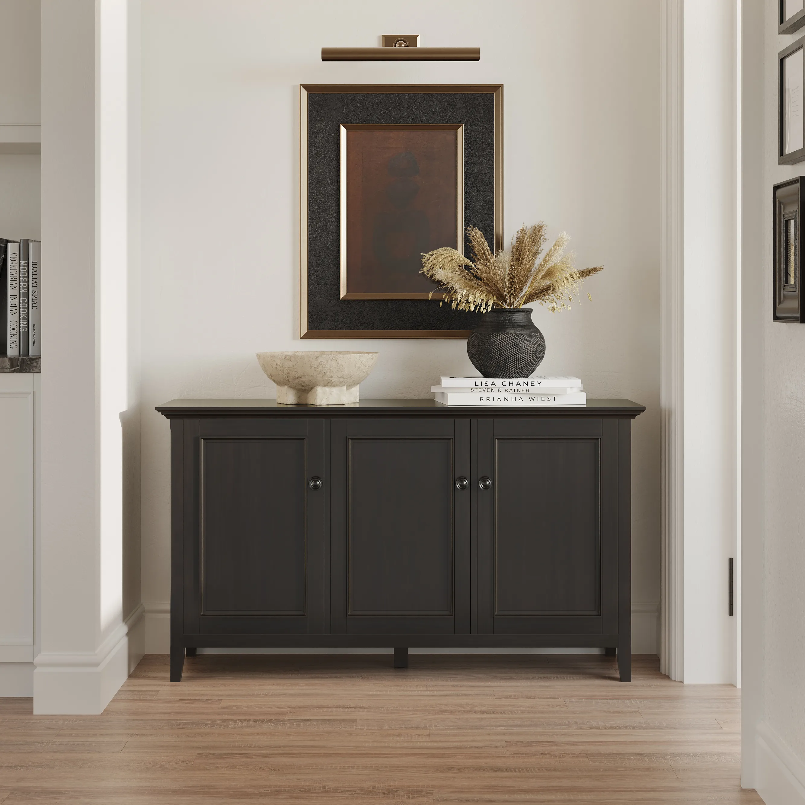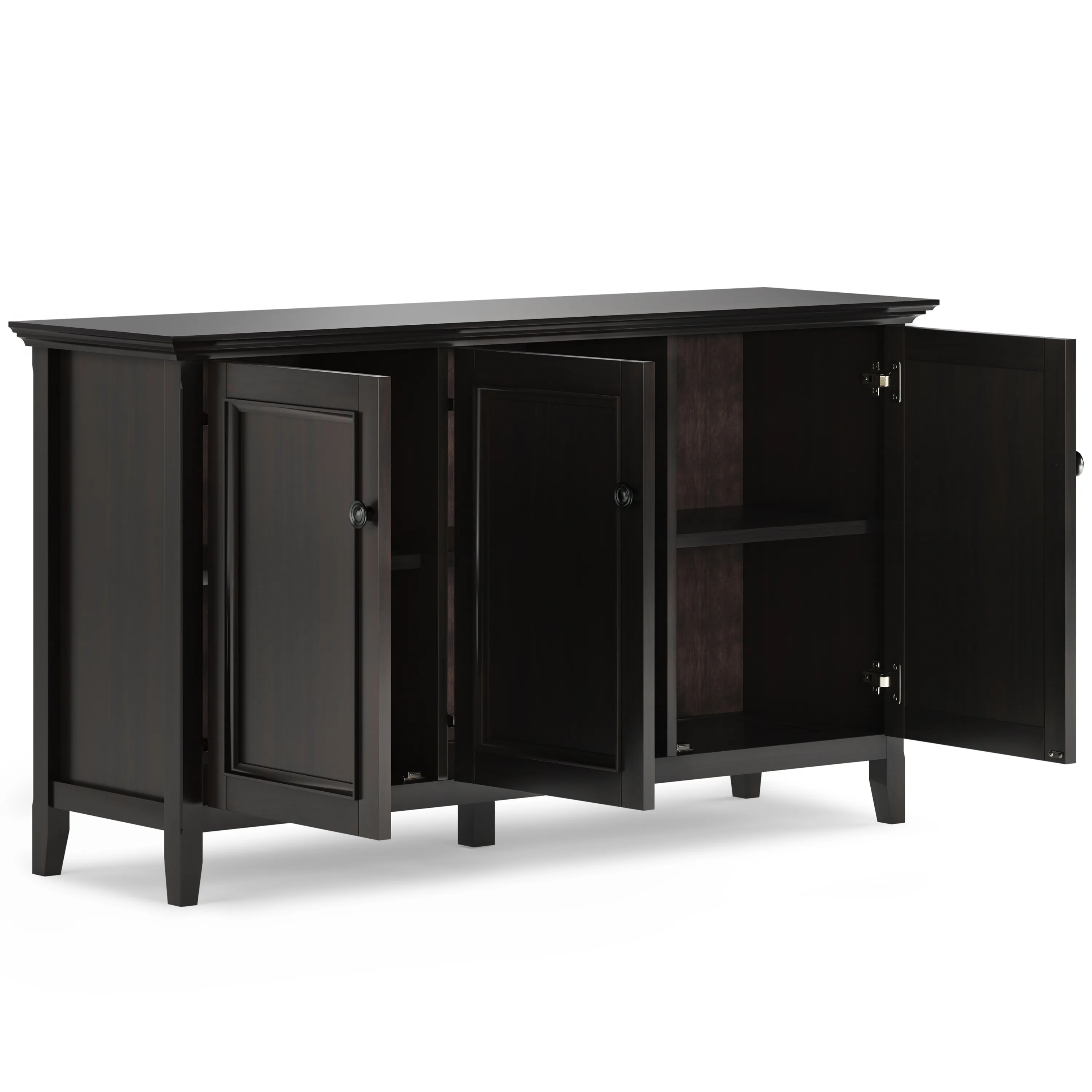 The Amherst Wide Storage Cabinet is an attractive versatile piece. This cabinet is crafted of solid hardwood with a rich finish. The three framed doors open to enclosed adjustable shelves offer an abundance of versatility to effortlessly organize and store away anything you wish to remain hidden This flexible and functional piece can be used in just about any room in your home.