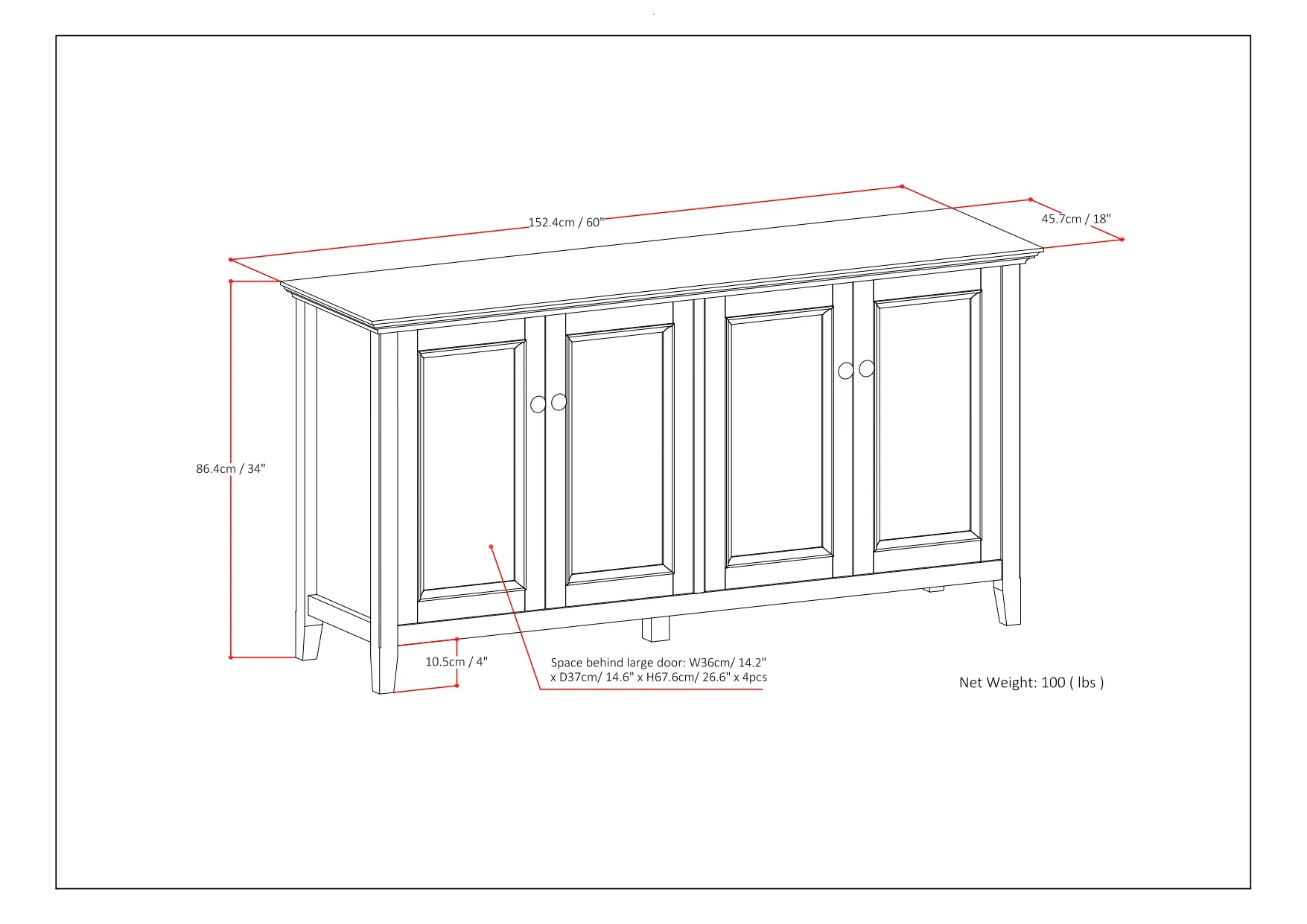 Amherst - Wide 4 Door Storage Cabinet - Hickory Brown
