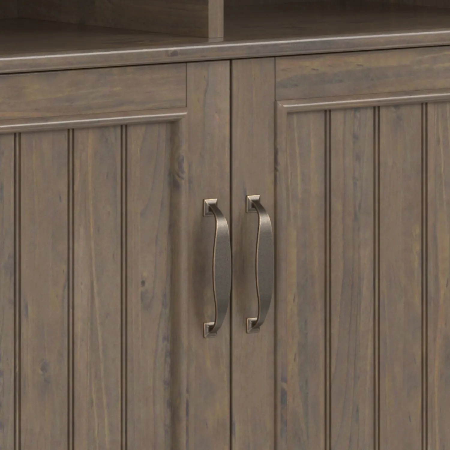 • Transitional design includes grooved detail on front, sides and brushed bronze handles