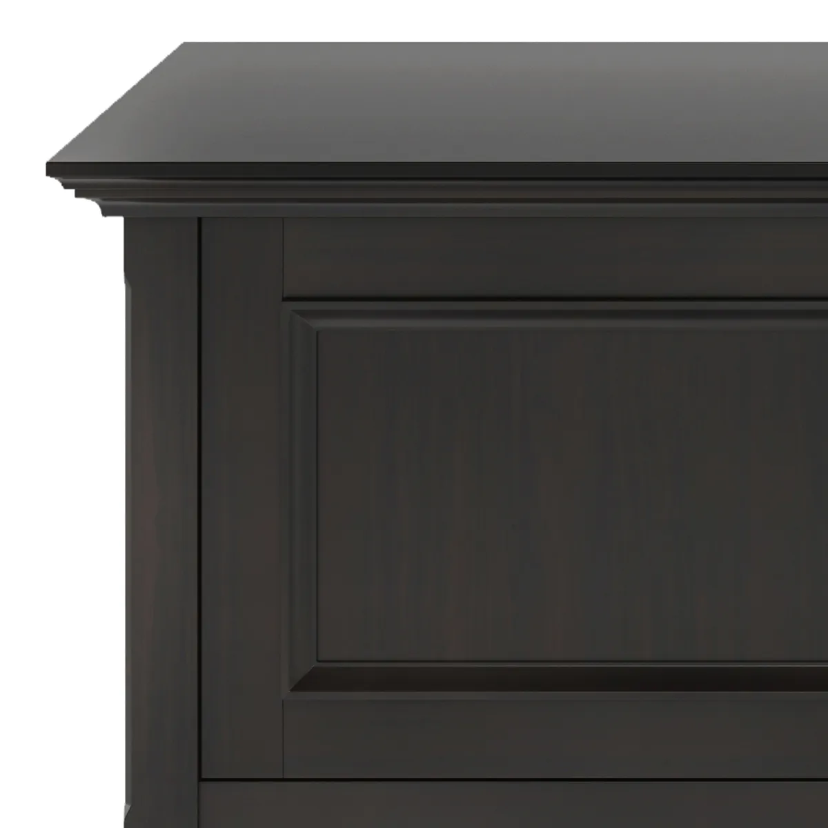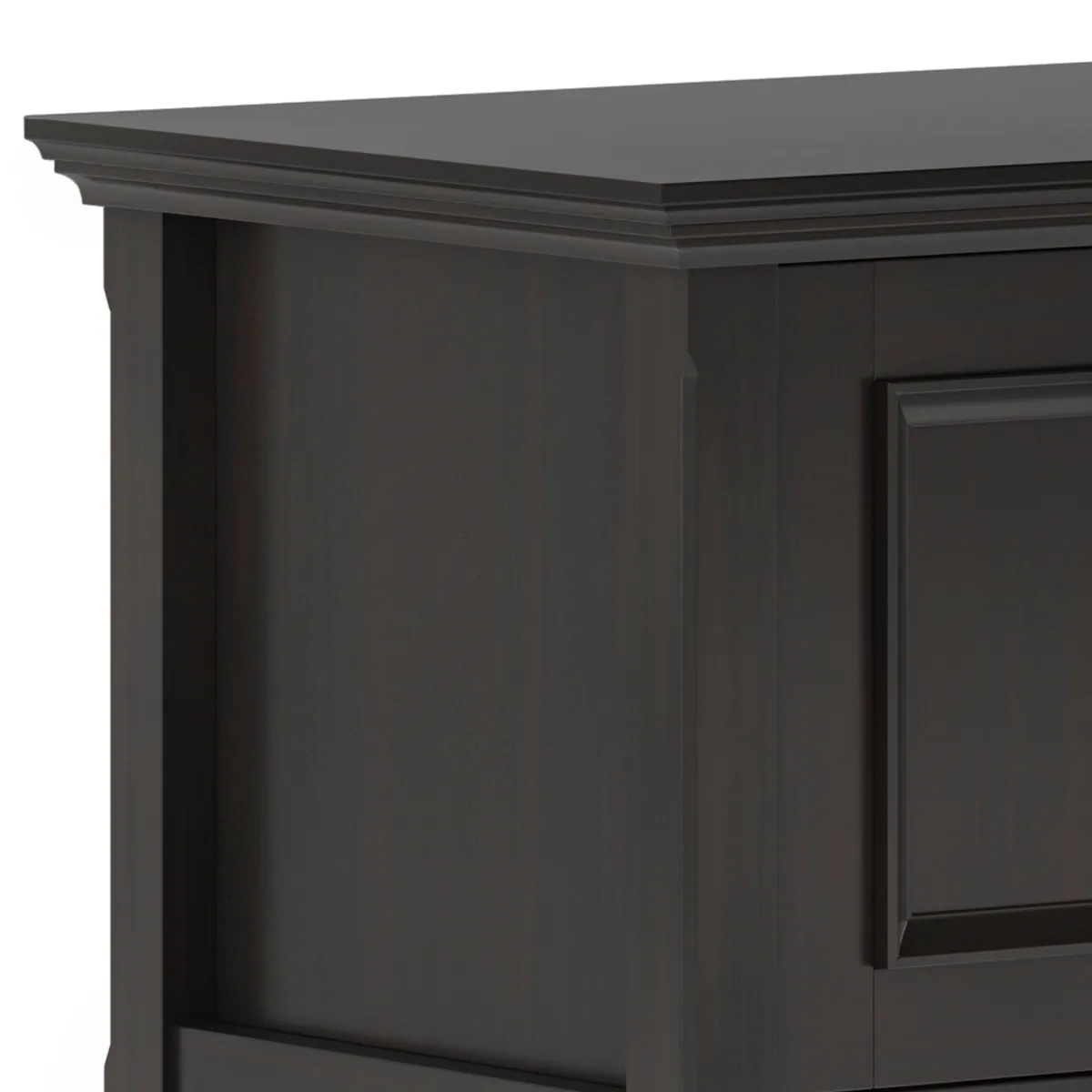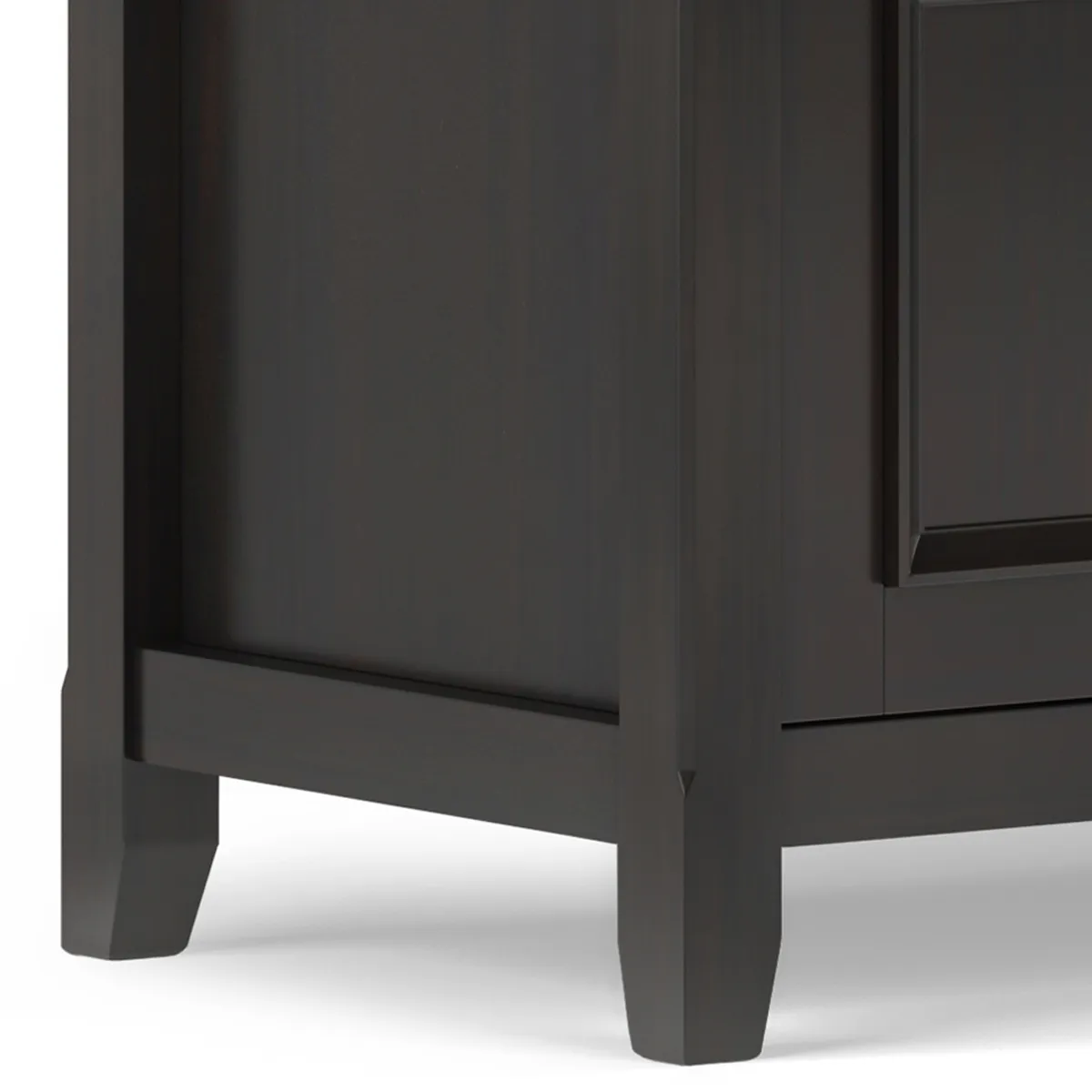 • Transitional design includes tapered legs, panel framed door fronts, and antique bronze round decorative knobs