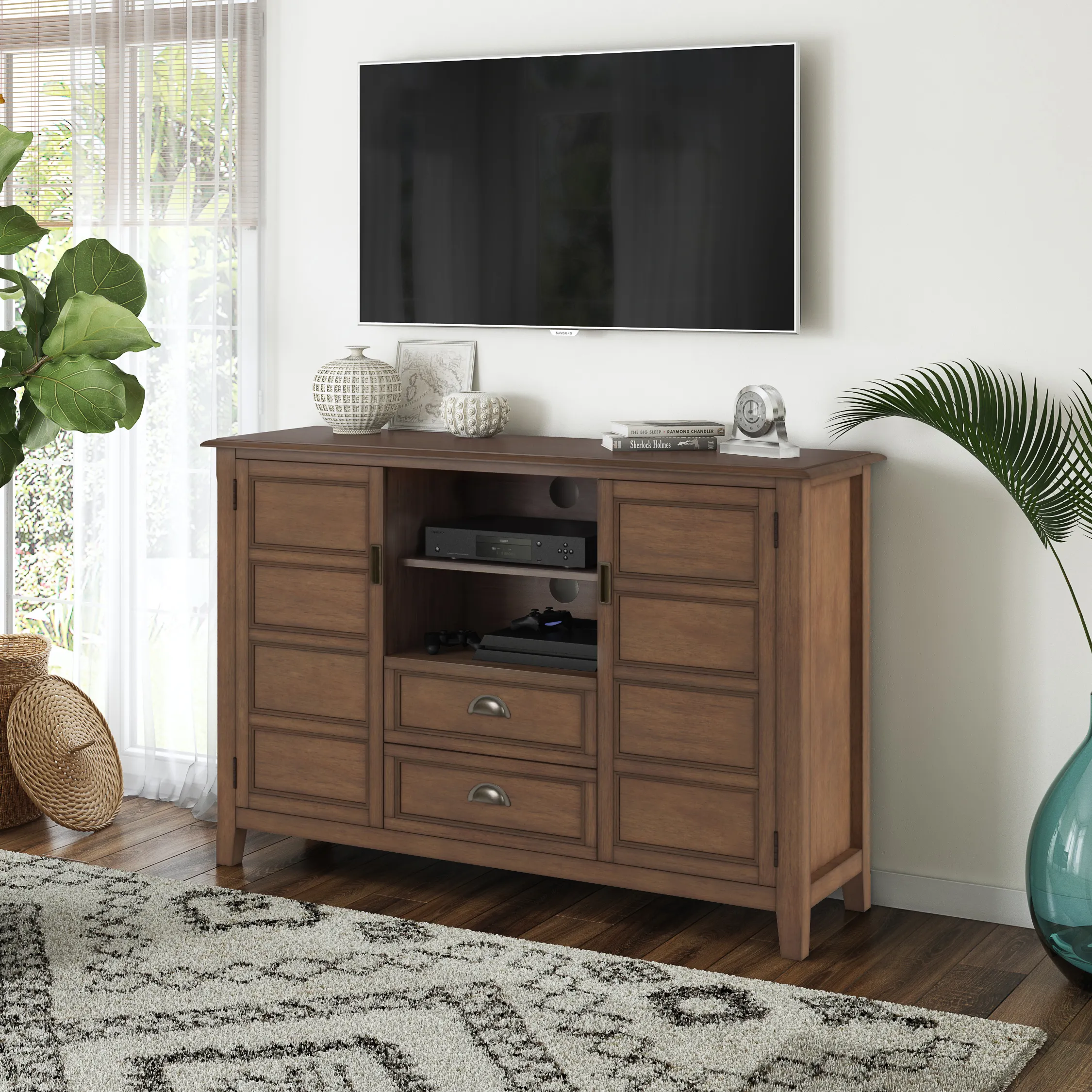 Burlington - Tall TV Media Stand - Rustic Natural Aged Brown