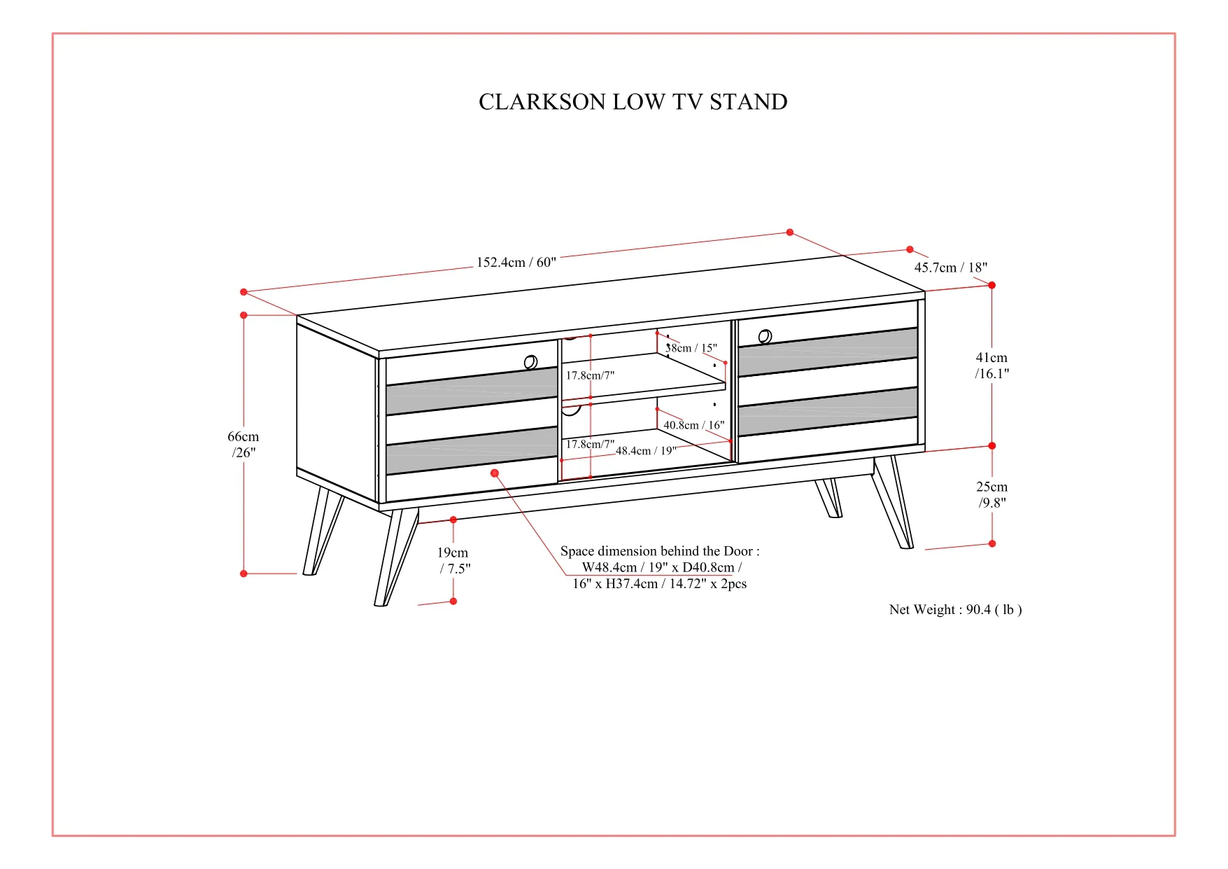 • Dimensions: 18" D x 60" W x 26" H