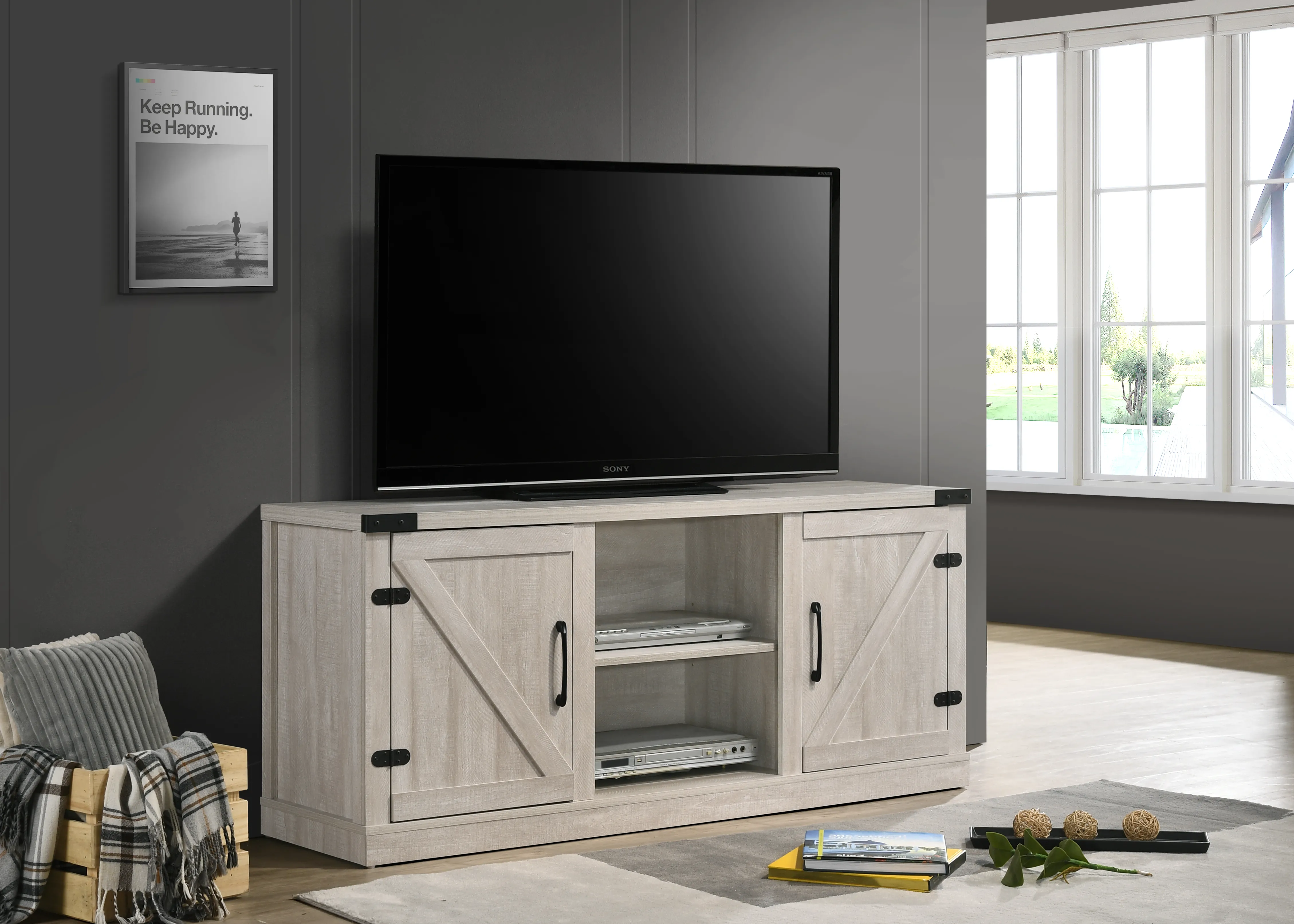 Salma - 58" Wide TV Stand With 2 Open Shelves And 2 Cabinets - Dusty Gray