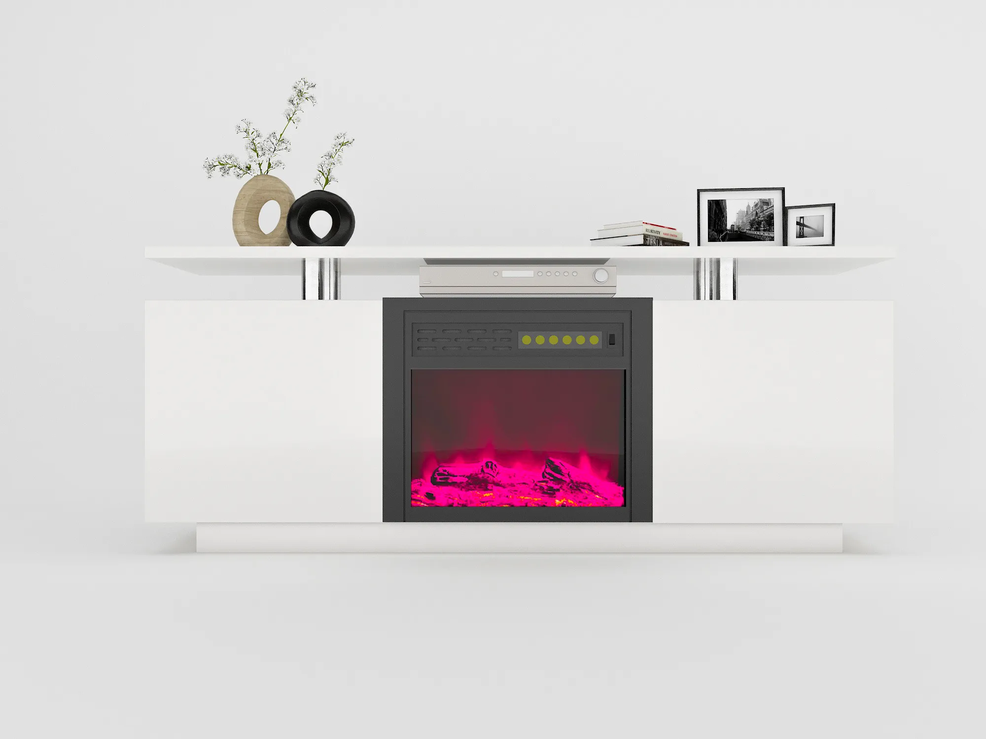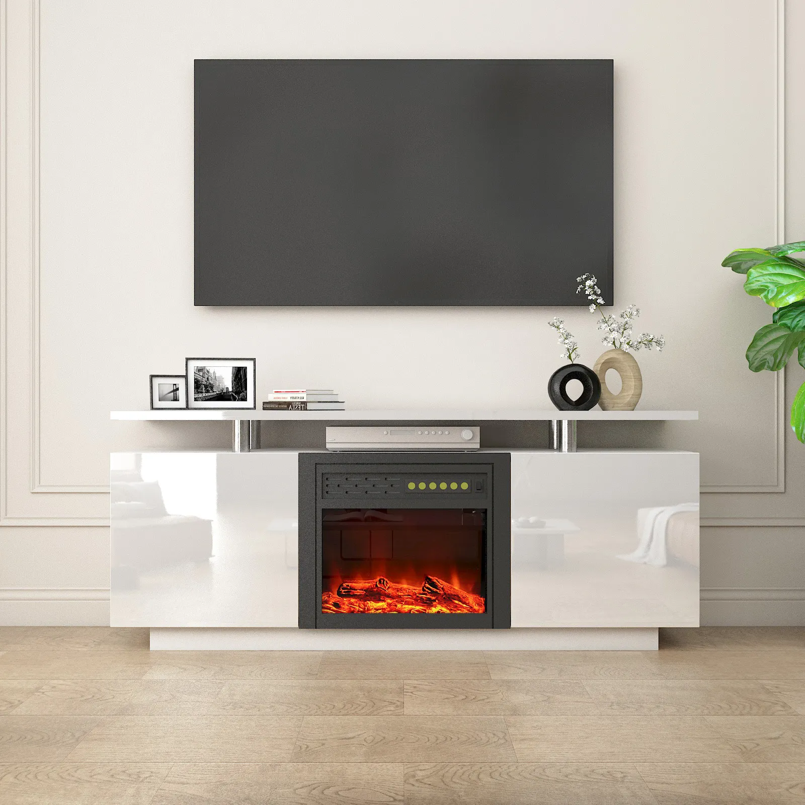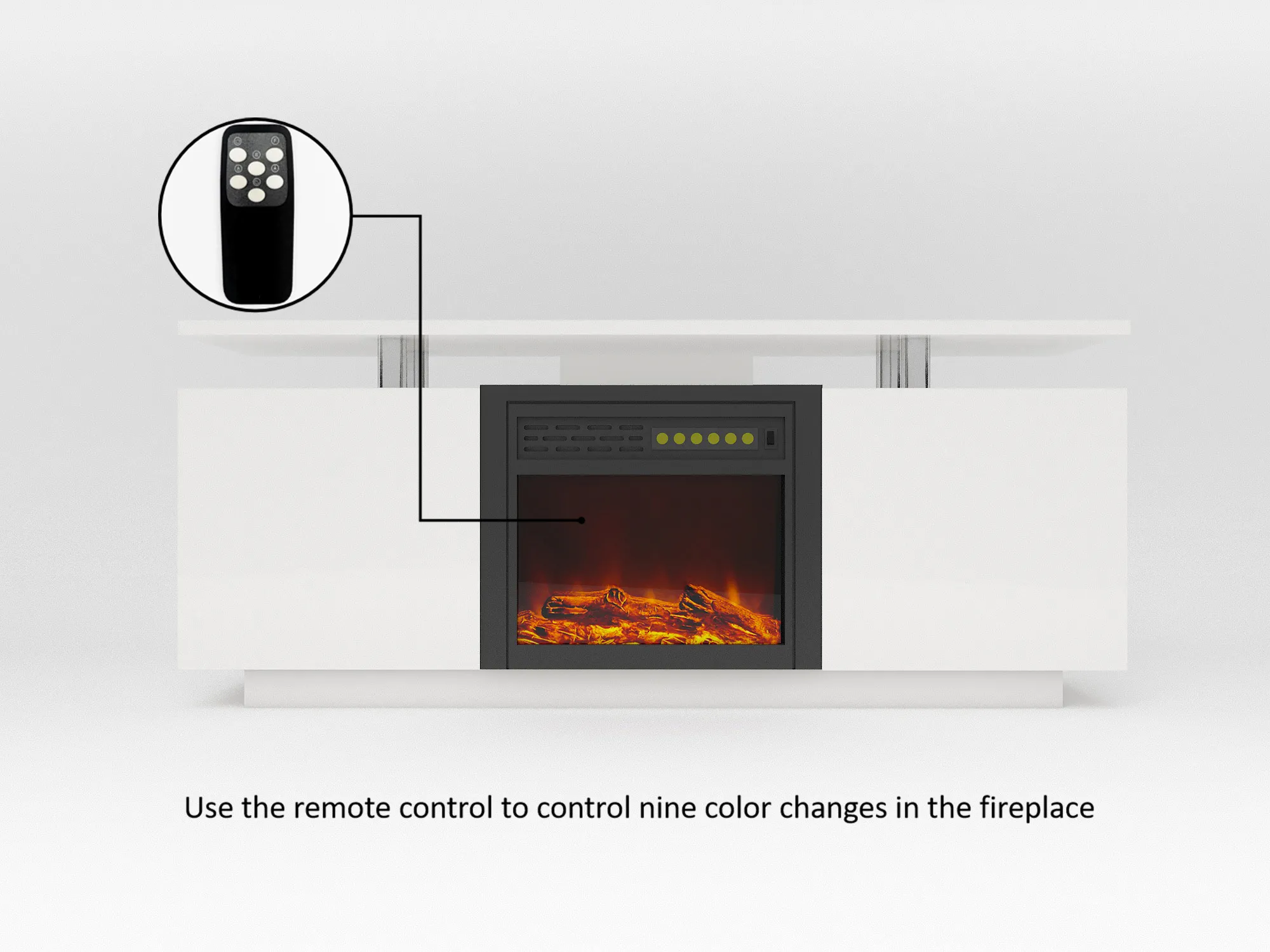 TV Cabinet, TV Unit With Fireplace, Have Heat And Flame Color Changes - White