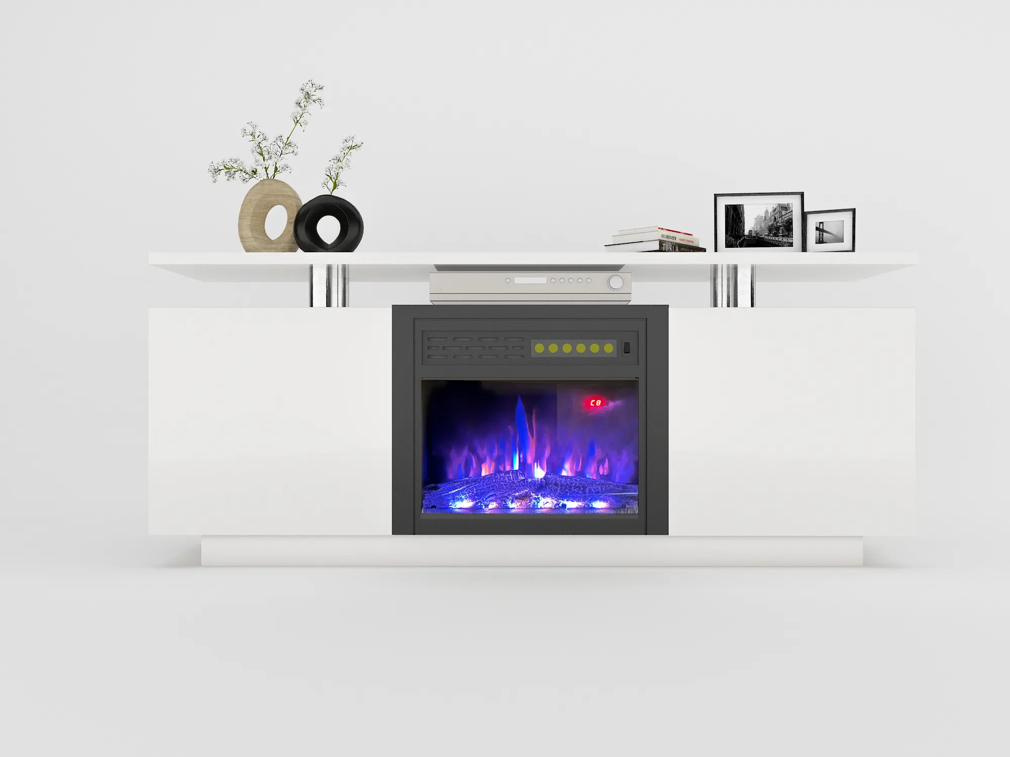 • Fireplace Function: Can be used with or without heat, with power settings of 750/1500Watts for flexibility.