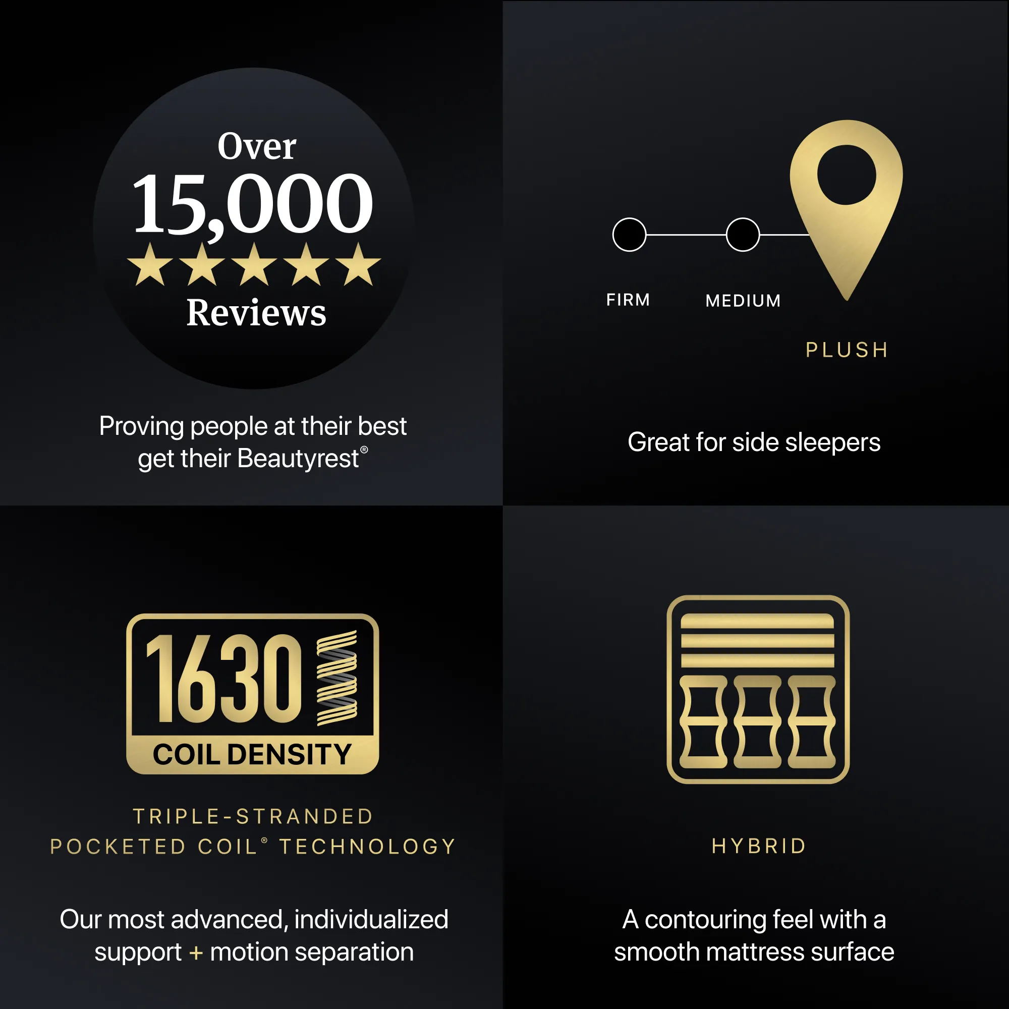 Experience the best of both worlds with Beautyrest Black® Hybrid Series Three XCS models—innovated to provide our most advanced, individualized support + motion separation with a contouring feel and exceptional cooling. Triple-Stranded Pocketed Coil® Technology powers your sleep performance, conforming to isolate movement and support your shape so you rest undisturbed. FORM™ HD Material deeply contours to your body without restricting your movements for a deep cradling sensation that won’t make you feel stuck in the mattress. Plus, Dynamic Response® Memory Foam relieves pressure and Micro Diamond™ Memory Foam helps promote cooling for peak comfort. Engineered for enhanced cooling, BlackICE® Max Cooling Technology boosts cooling power by 30%, moving body heat so you sleep cooler, longer, and our cool-to-the-touch Sleep Climate™ Surface tops it all for a cool sleep. Featuring a dynamically-designed ContourCover™ that allows for split-head sizing, perfect to pair with a split-head adjustable base for customizable comfort, Series Three XCS models help you experience the best of Beautyrest® every night.