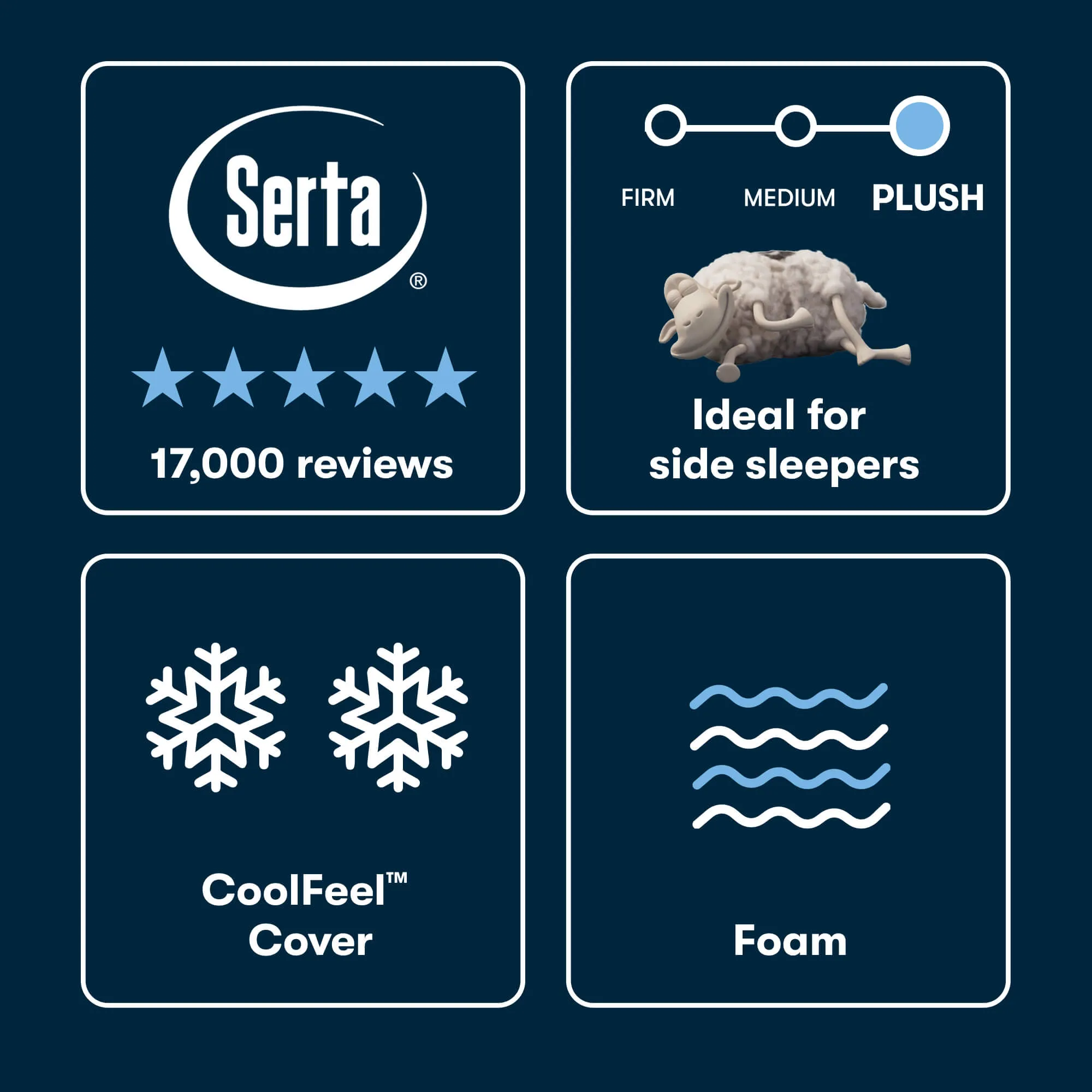 We've evolved the Serta® iSeries NXG™ to be the next generation of comfort. We've built this Plush feel mattress with a series of benefits for the sleep you want. Experience immediate cooling, instant pressure relief, and ideal support for a deeper, more restful sleep at a price that makes sense. Featuring high-density memory foam, NXG™ Memory Foam delivers deep, contouring pressure relief. A cool-to-the-touch fabric offers instant cooling, while Carbon Fiber Memory Foam draws heat away from the body for all-night comfort. Plus, a dense foam core provides durable support.