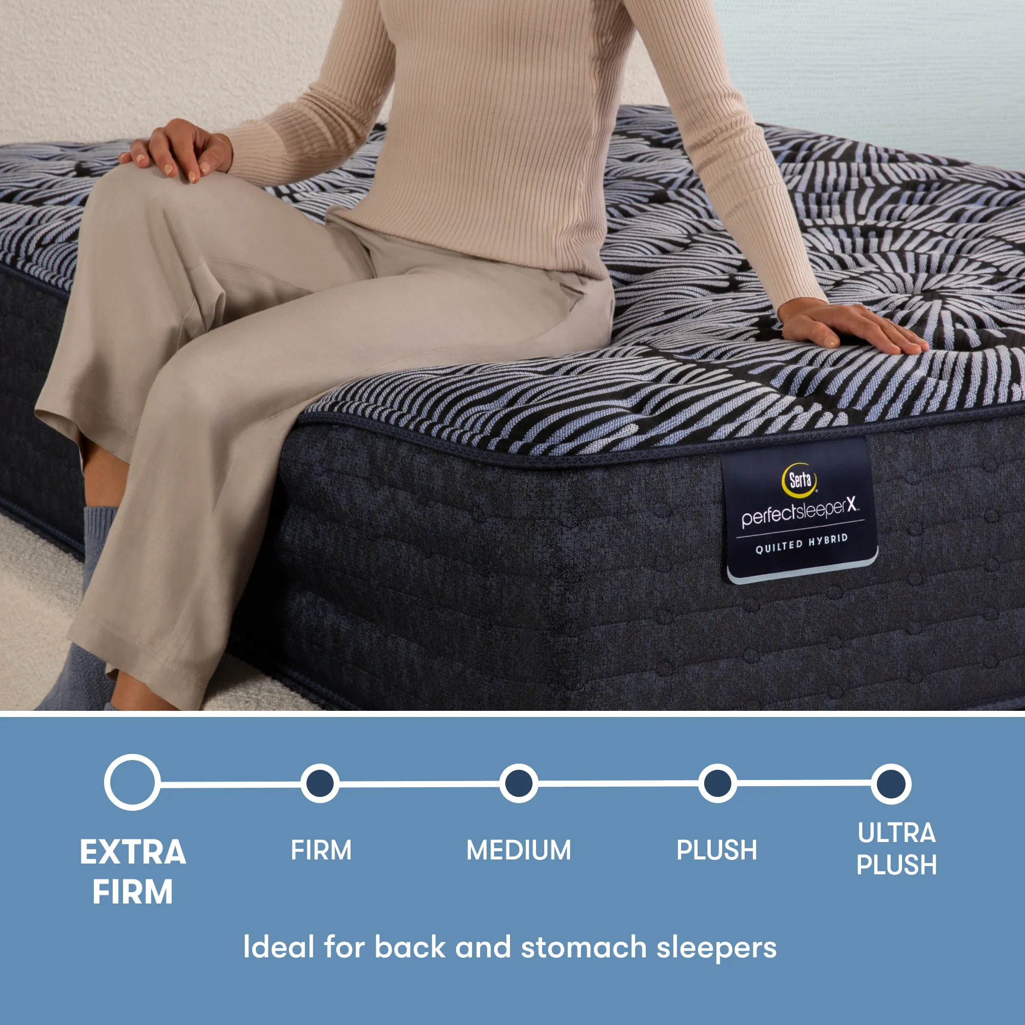 Experience premium support and perfect sleep with our new Serta® Quilted Perfect Sleeper X™ Collection. Our 5 ZoneResponse™ Design is comprised of Perfect Conform™ Memory Foam paired with 5-zoned coils for full-body alignment. Sleep comfortably cool throughout the night with cooling technology and graphite-infused memory foam designed to redistribute heat away from your body. A quilted top offers a classic feel and added layer of plush foam. Xtraordinary sleep is possible, with Serta® Quilted Perfect Sleeper X™.