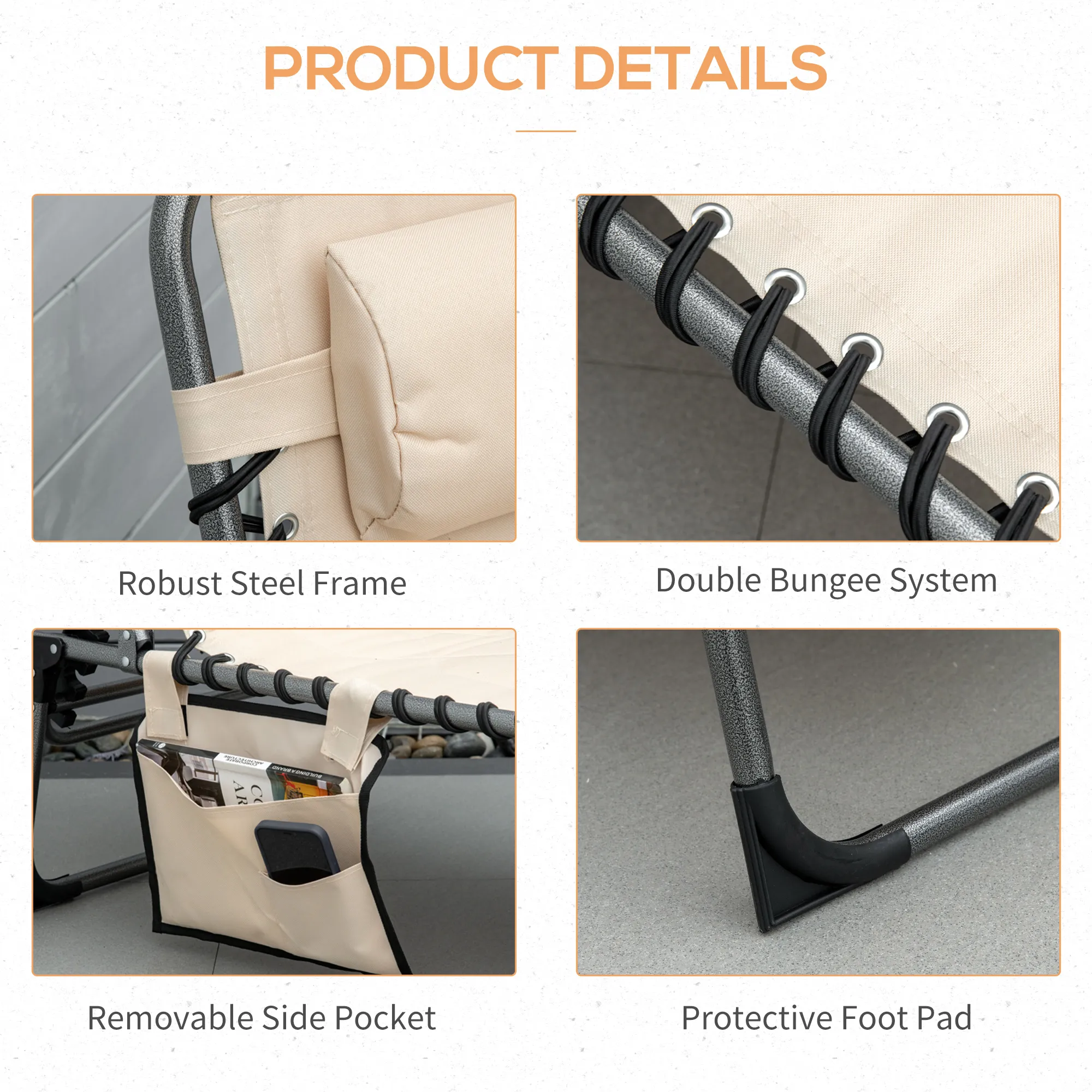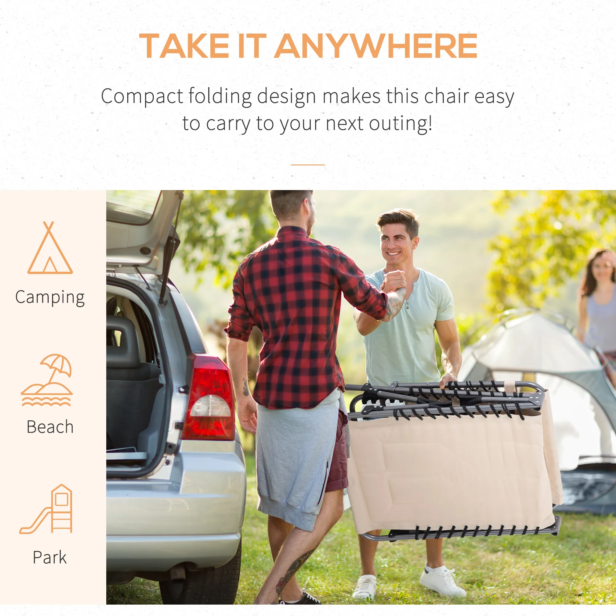 Outsunny - Padded Folding Chaise Lounge Chair, Outdoor 6-Level Reclining Camping Tanning Chair With Headrest For Beach, Yard, Patio, Pool - Beige