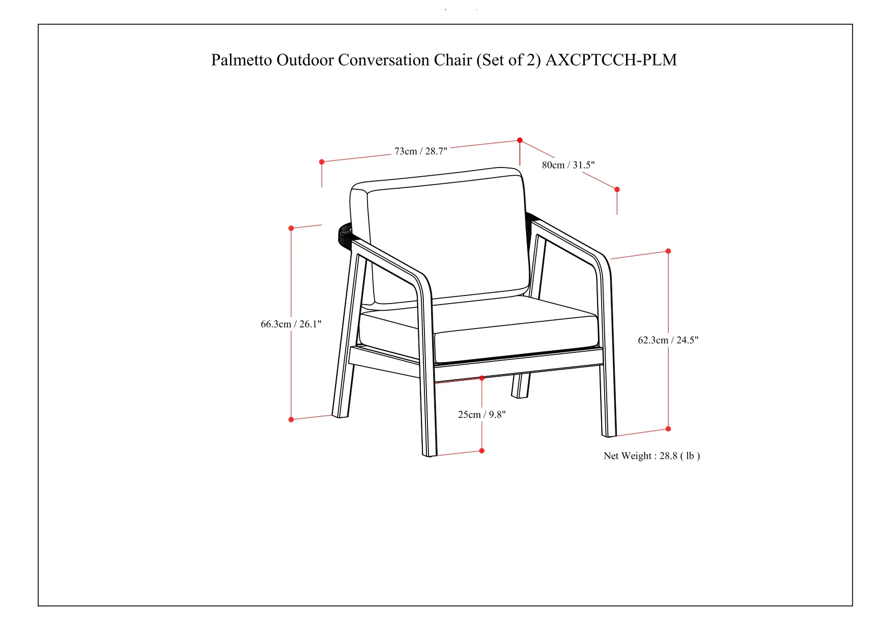 • Perfect on your balcony, front porch or combine with the Palmetto Outdoor Sofa and Coffee Table for the perfect backyard arrangement, Sold in a set of 2