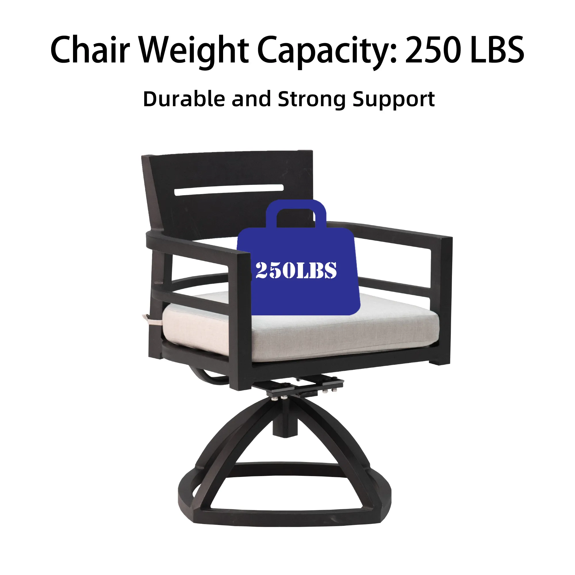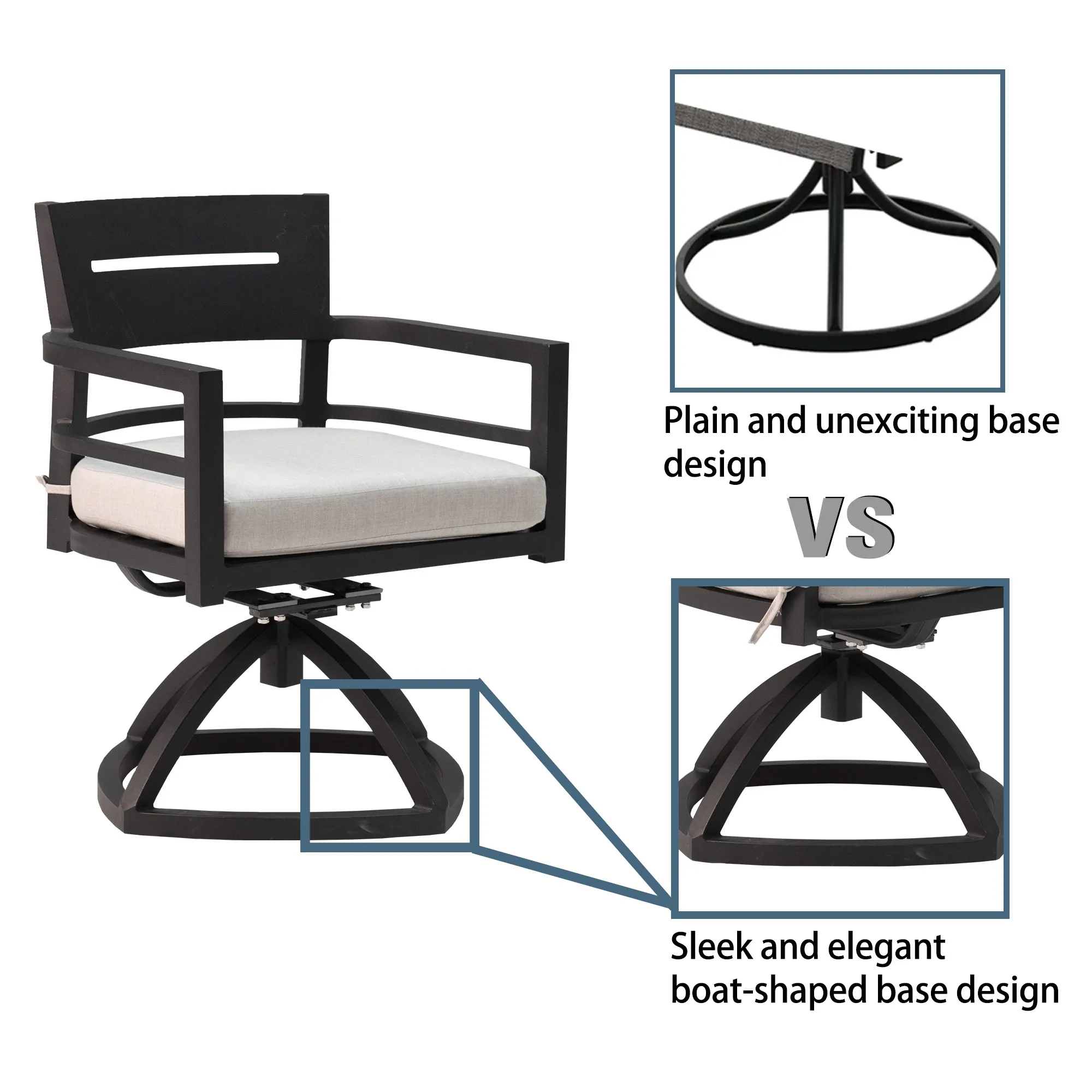 7 Piece Dining Set Modern Outdoor Patio Furniture, Including 4 Dining Chairs & 2 Swivel Rockers Sunbrella Fabric Cushioned And Rectangle Dining Table With Umbrella Hole - Ember Black