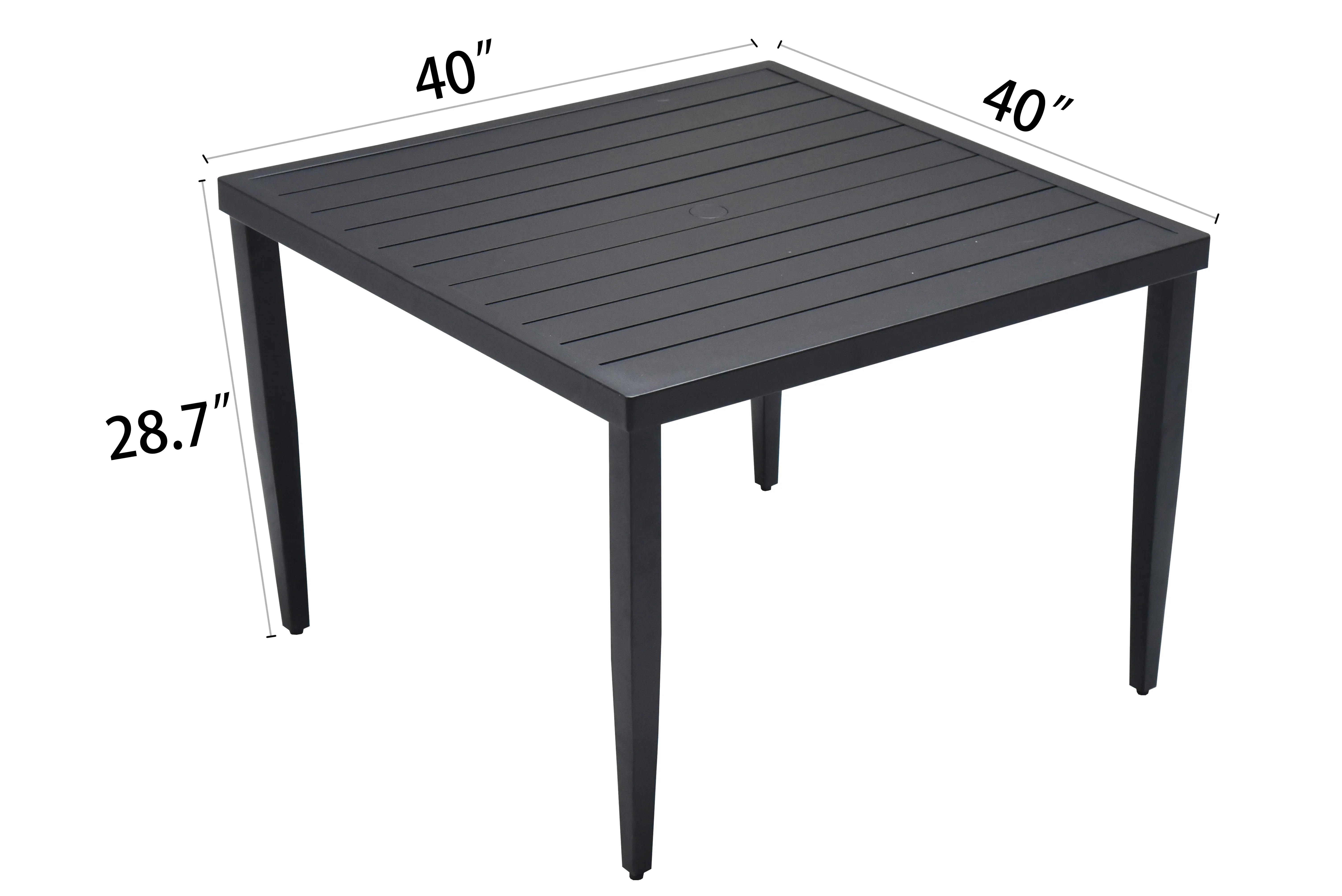 Outdoor Patio Square Dining Table With Tapered Feet & Umbrella Hole - Ember Black