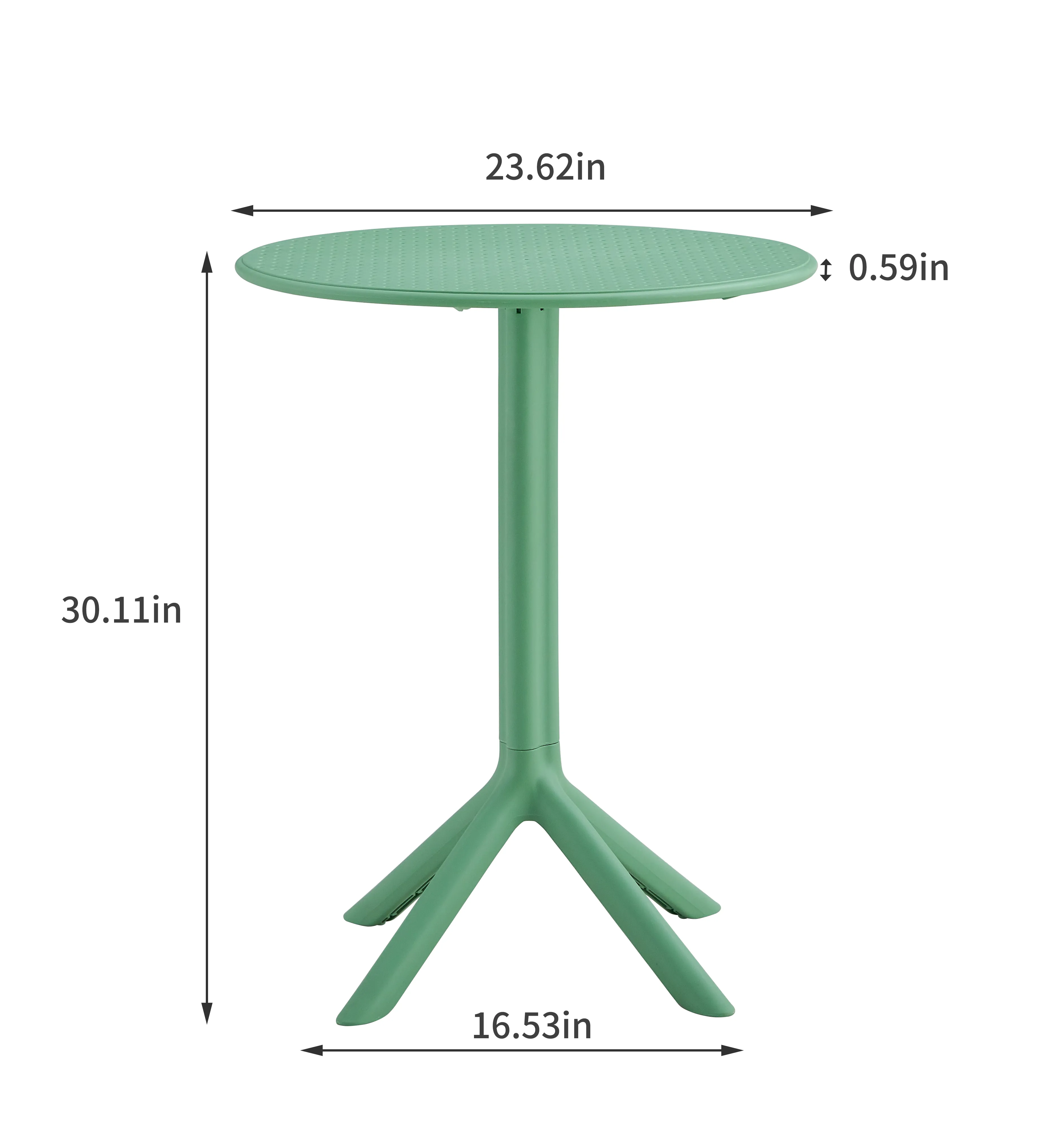 Color Variety: Available in turmeric, army green, light gray, dark gray, and white to meet different color preferences. Weather-Resistant Design: Chairs and table are designed and tested to withstand mild weather conditions, but it's recommended to provide protection during heavy exposure to elements. Durable Material: Made from high-quality polypropylene using injection molding for enhanced durability and weather resistance.