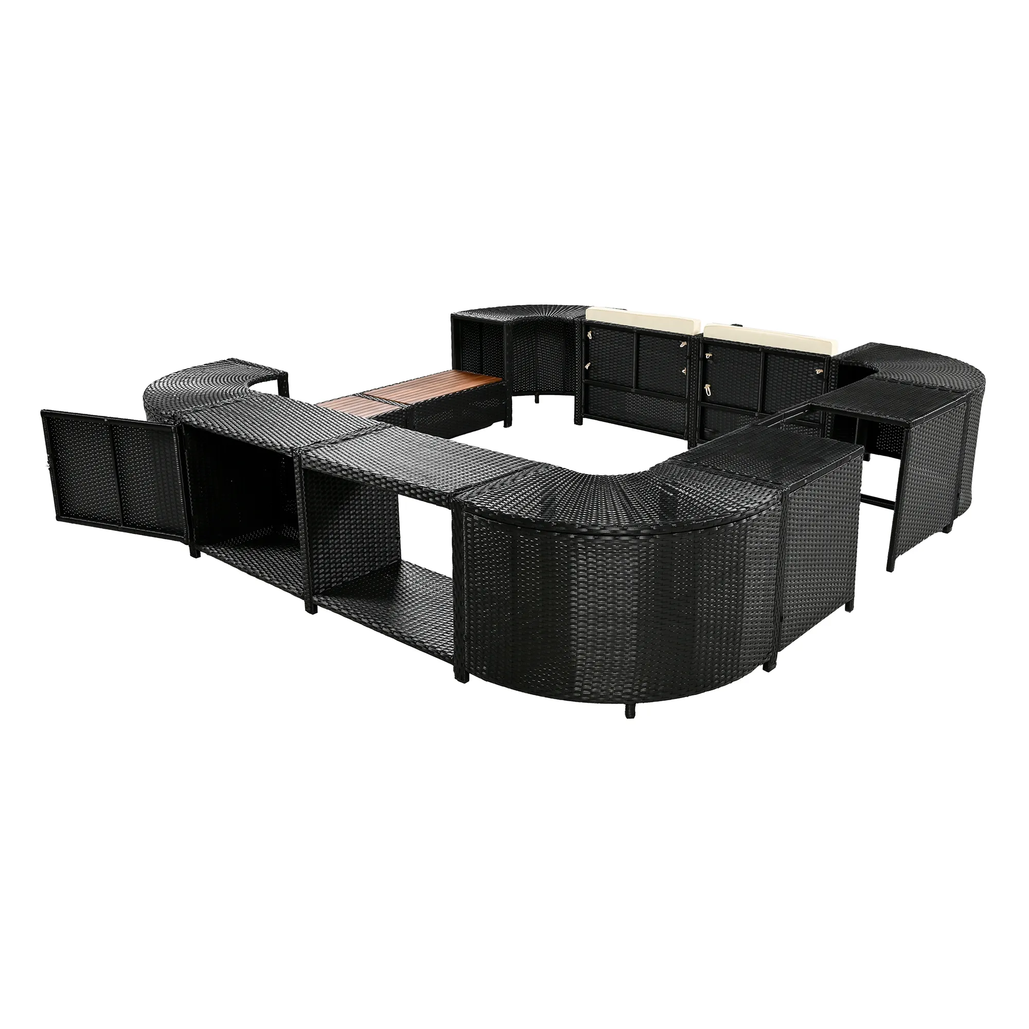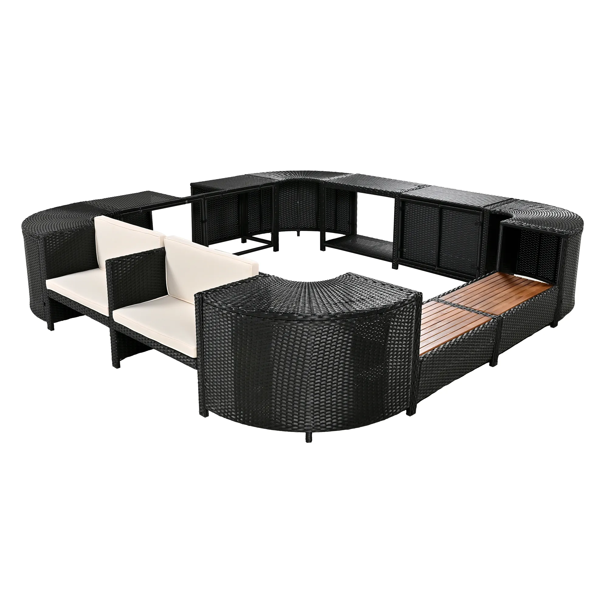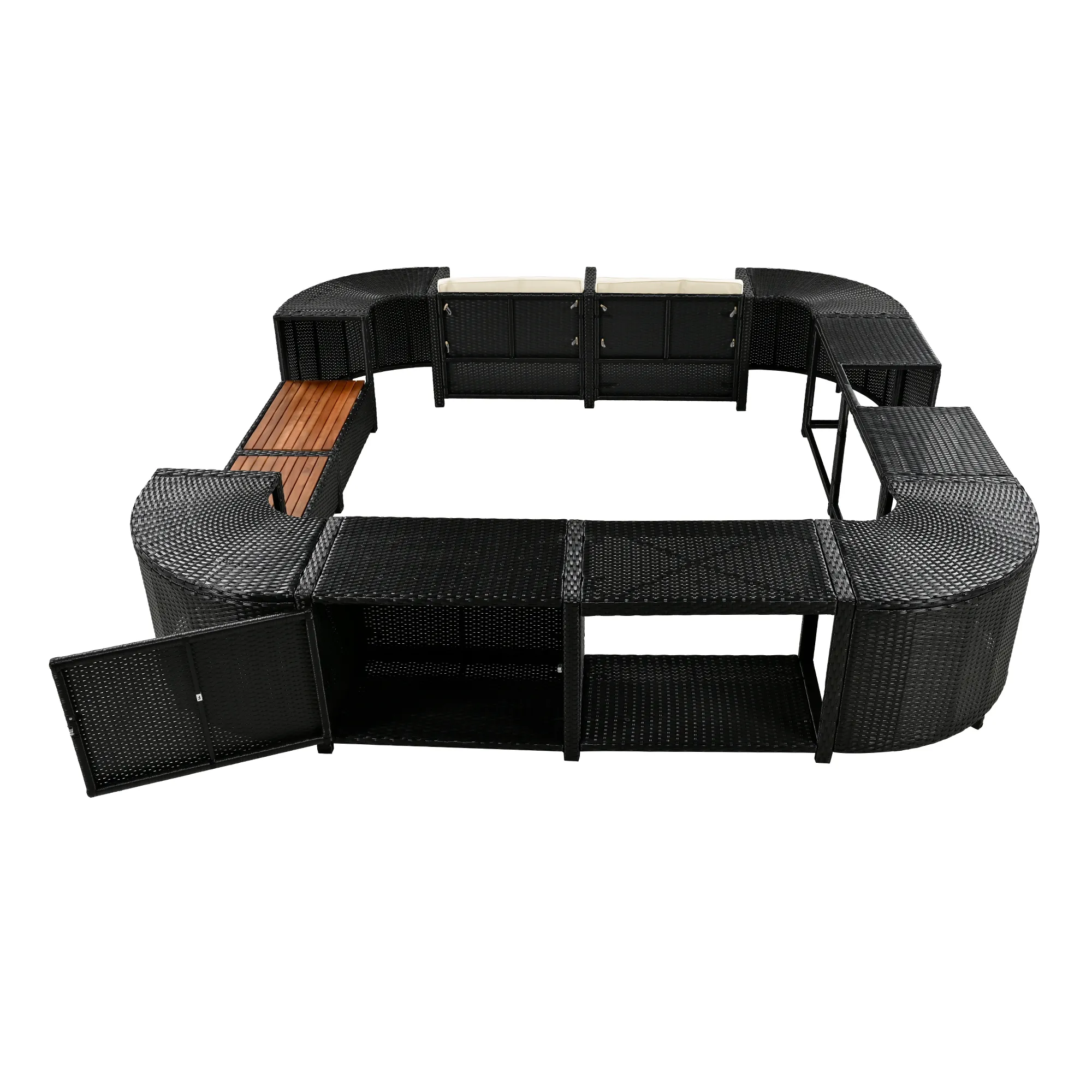 Spa Surround Spa Frame Quadrilateral Outdoor Rattan Sectional Sofa Set With Mini Sofa, Wooden Seats And Storage Spaces - Beige