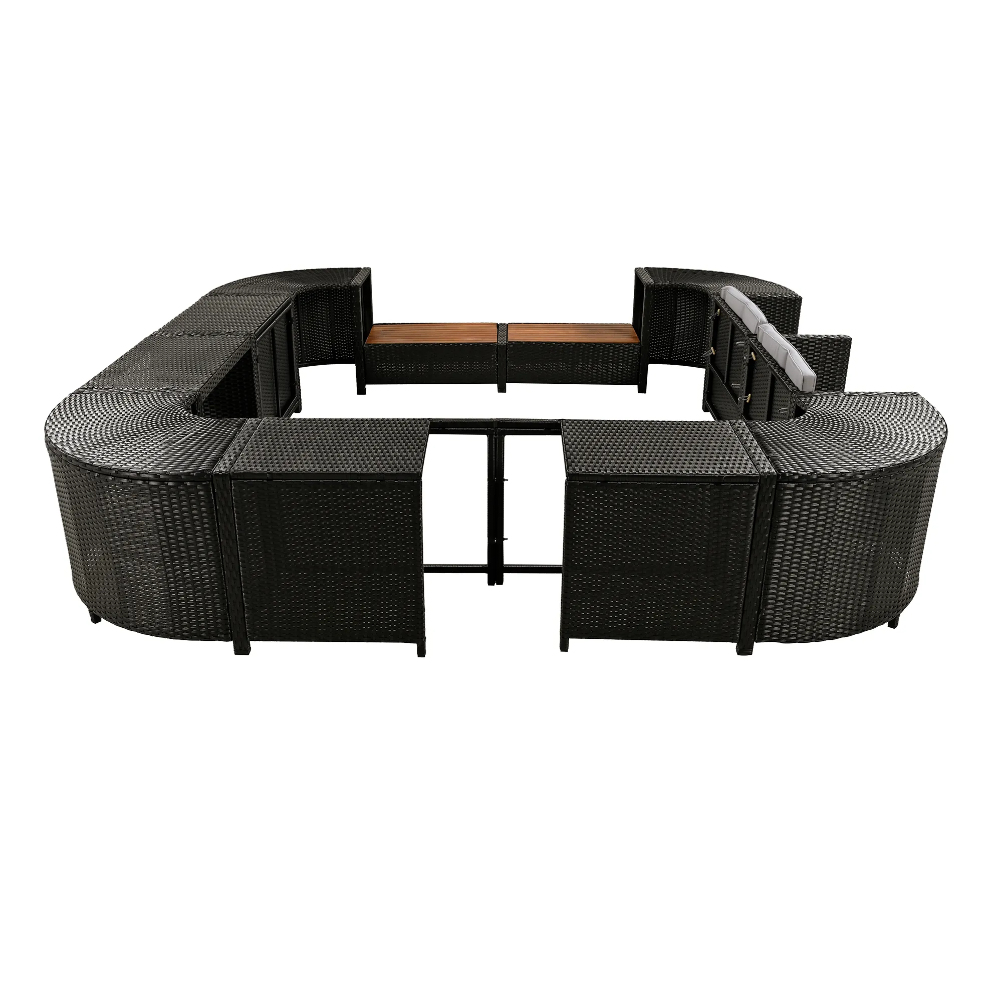 Spa Surround Spa Frame Quadrilateral Outdoor Rattan Sectional Sofa Set With Mini Sofa, Wooden Seats And Storage Spaces - Gray